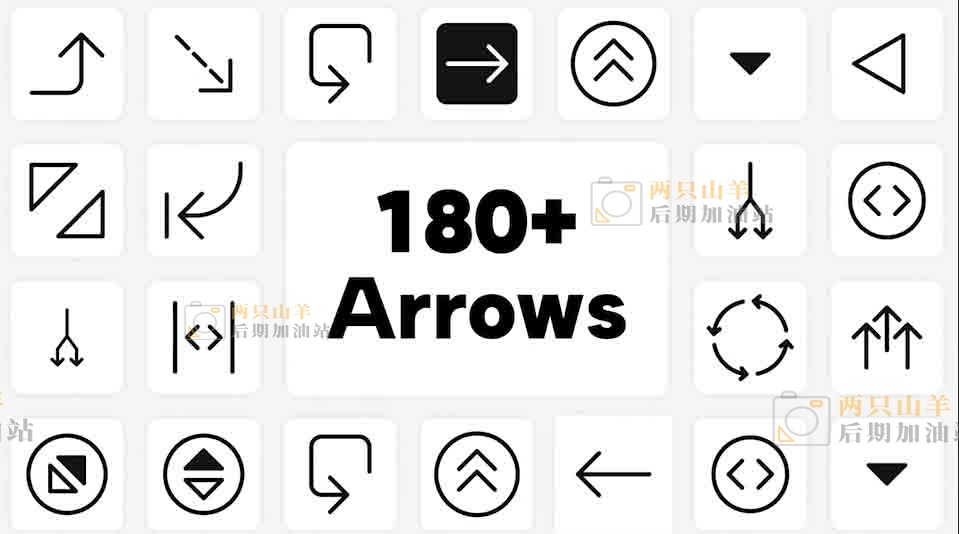 Big Pack Arrows是一个包含180组箭头符号、线条、指示标注动画的模板。模板可以在Adobe After Effects和Premiere Pro中使用,提供了丰富的箭头符号和线条样式,可以用于制作各种指示标注、演示文稿、宣传视频等。