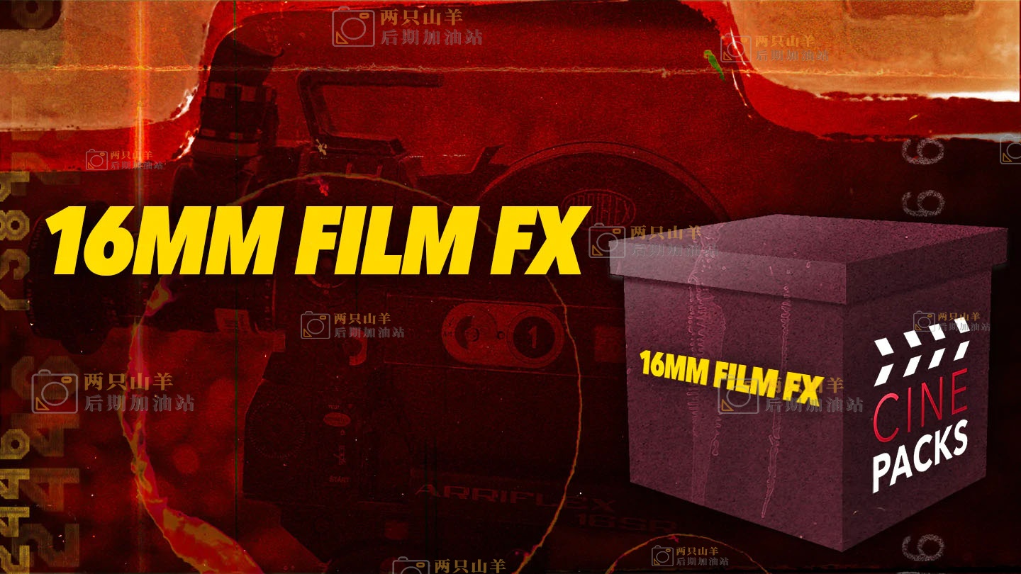 一套由 Cinepacks 出品的可将普通影片模拟16mm电影胶片效果外观的素材包,超过100多种胶片颗粒、纹理、叠加层、过渡转场、打孔、闪光、噪点、边框、灼烧光效等,是迄今为止最全最佳的胶片素材包