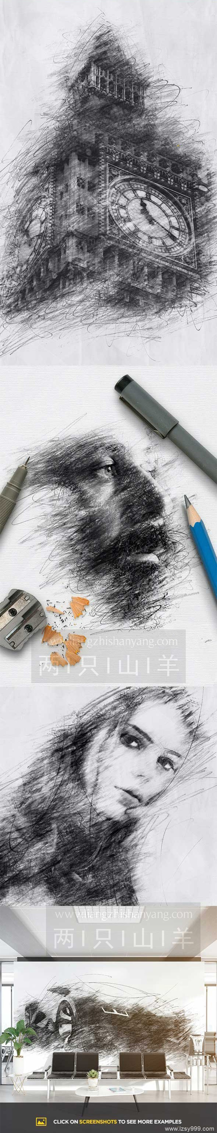 PS动作-精品手绘草图PS汉化中文动作-Draft Sketch Photoshop Action附视频教程
