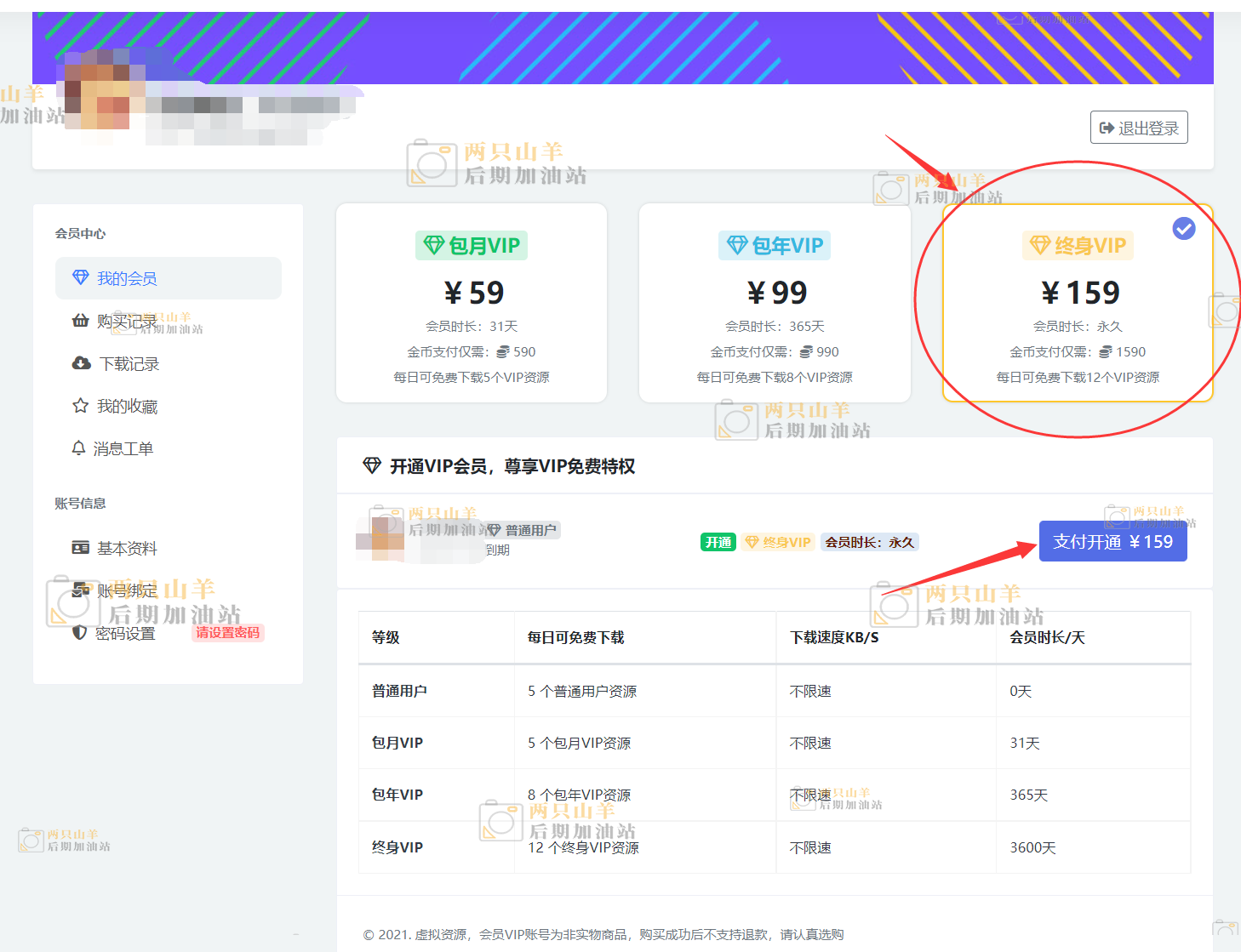 - 年会员 :免费下载网站月会员+年会员资源(终身权限资源不能下载)