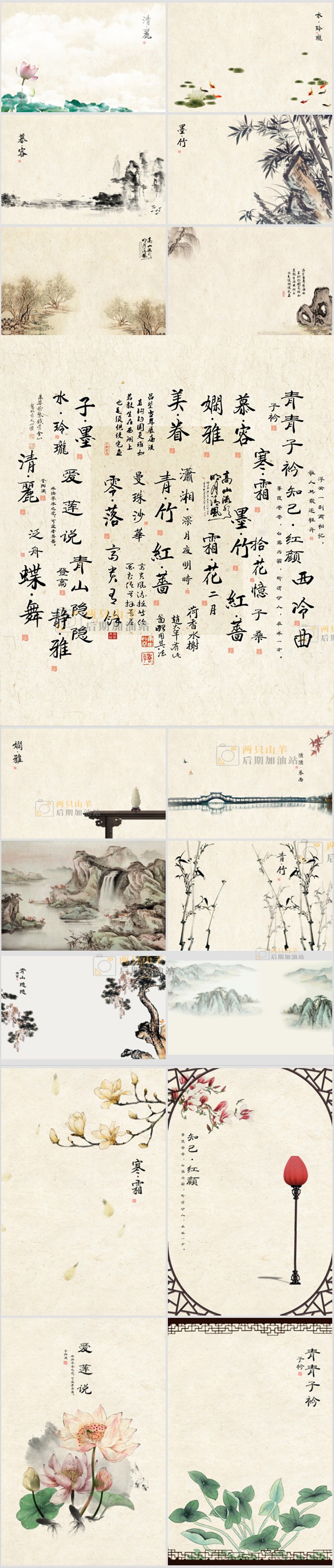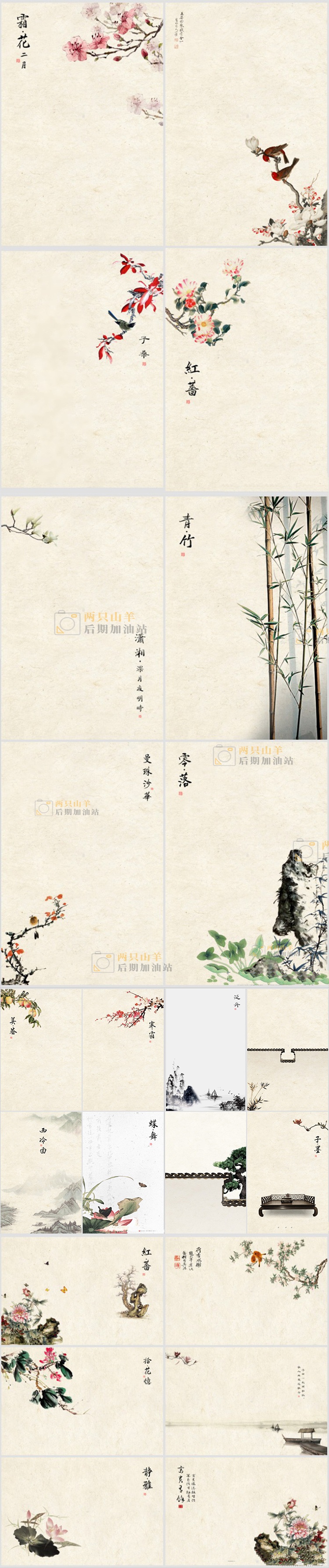 素材-40P新版工笔画国画中国风影楼PSD模板背景素材