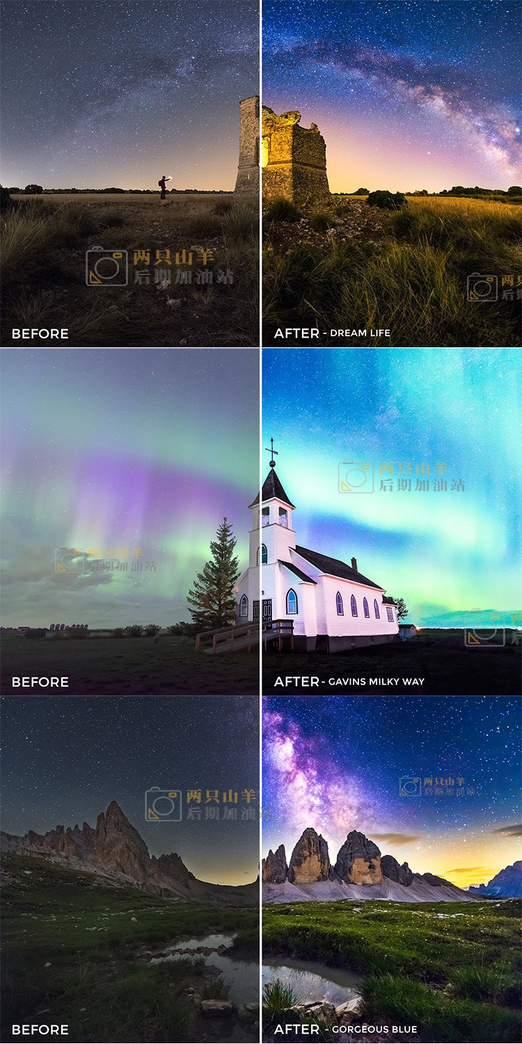 LR/PS预设-20款高端清晰通透夜景银河系星空极光天文风光摄影Lightroom预设Astro_Photography_Lightroom_Presets