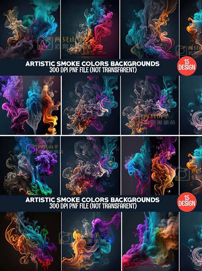 素材-15张艺术烟雾颜色高清背景素材包 摄影后期合成素材Artistic-Smoke-Colors-15-PNG