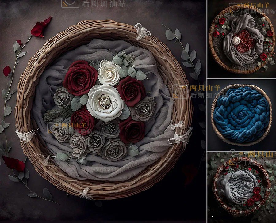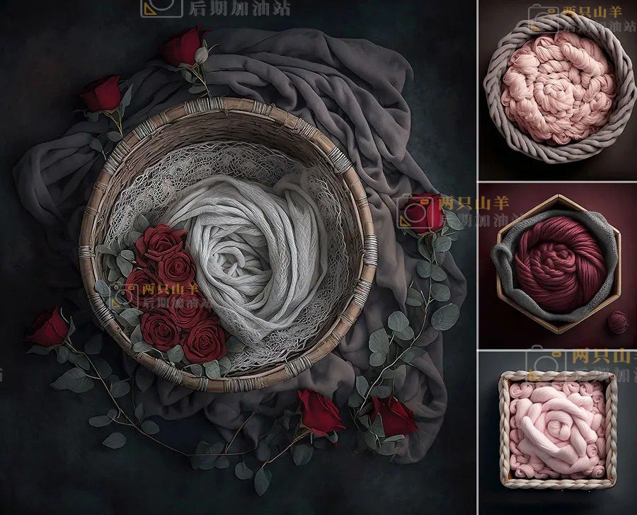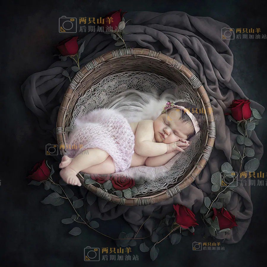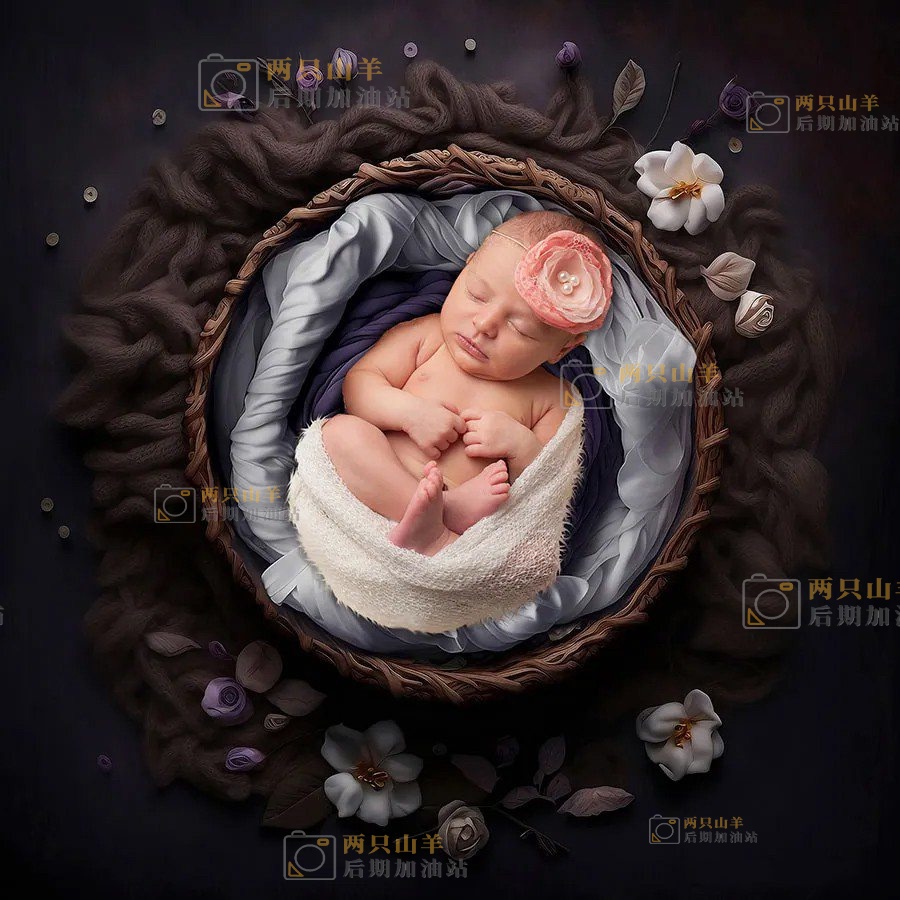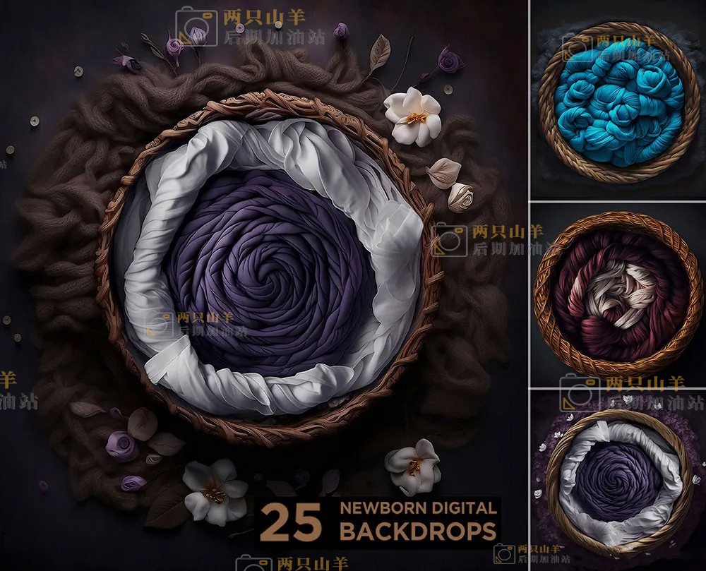 素材-25幅高清新生儿数字绘画感艺术背景影楼后期叠加合成素材 Newborn Digital Backdrops