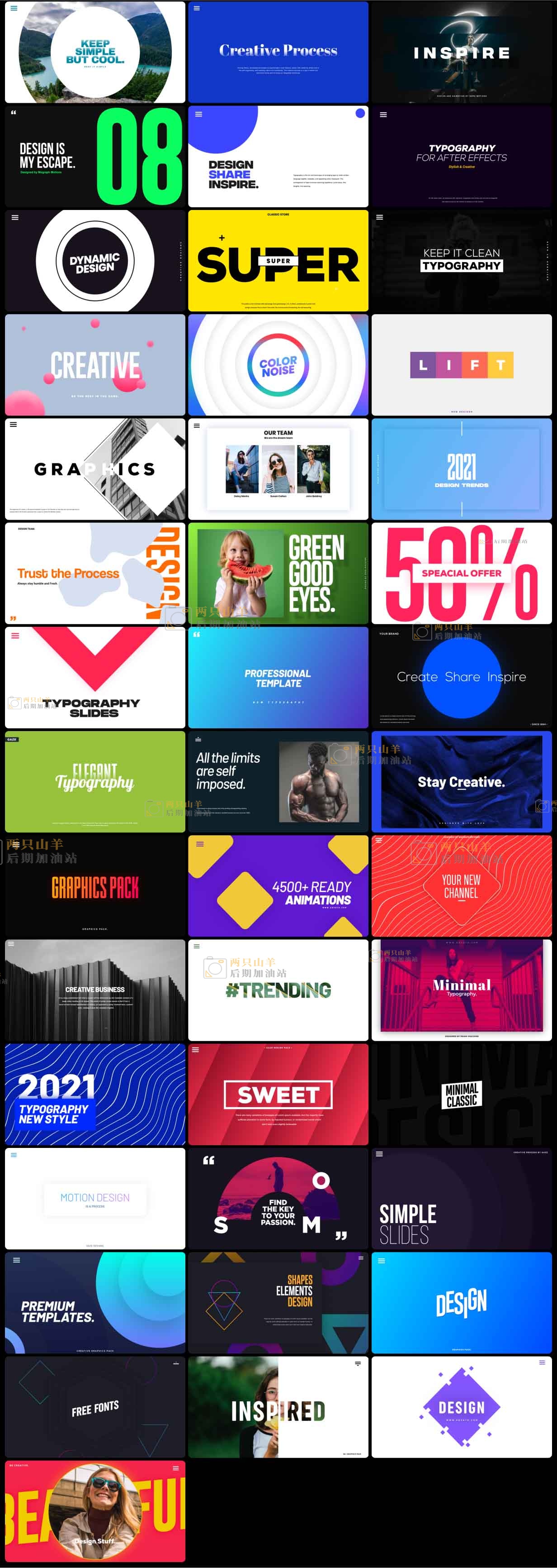 AE脚本-4500种社交媒体图文排版设计文字标题竖屏封面转场背景图形包装动画 Graphics Pack V5(AtomX 3.0.7)