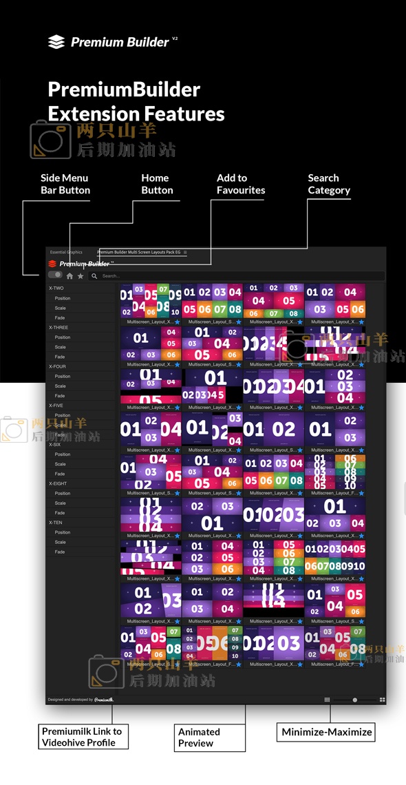 PR脚本-500个多画面网格组合动态视频分屏特效展示 Multi Screen Layouts Pack (Premium Builder)