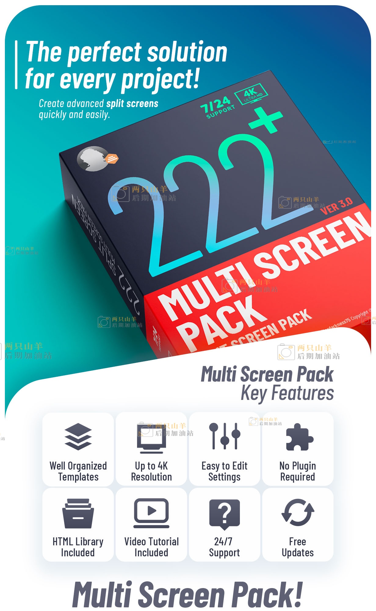 AE模板-222个多画面视频分屏网格组合动画效果预设 Multi Screen Pack V3