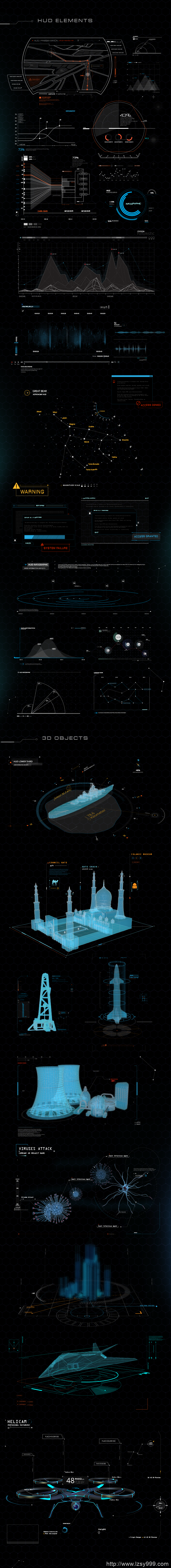 约375个高科技HUD元素和图形,可用于HUD视频、转场过渡、介绍、游戏和所有其他项目创建科幻HUD元素和未来派图形场景。