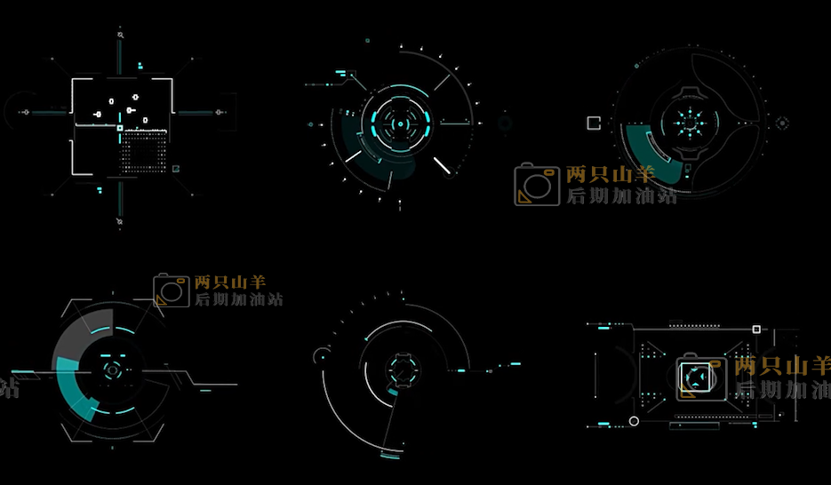 包含16种科技感无人机目标跟踪HUD元素动画,可以在科幻电影中使用它们。可以自定义颜色,大小等参数。