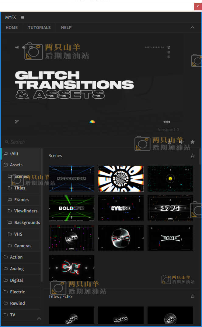 PR脚本-500组画面损坏故障干扰毛刺效果文字标题取景器取景框VHS色散毛刺抖动转场预设 Glitch Transitions (MYFX 3.0.2)