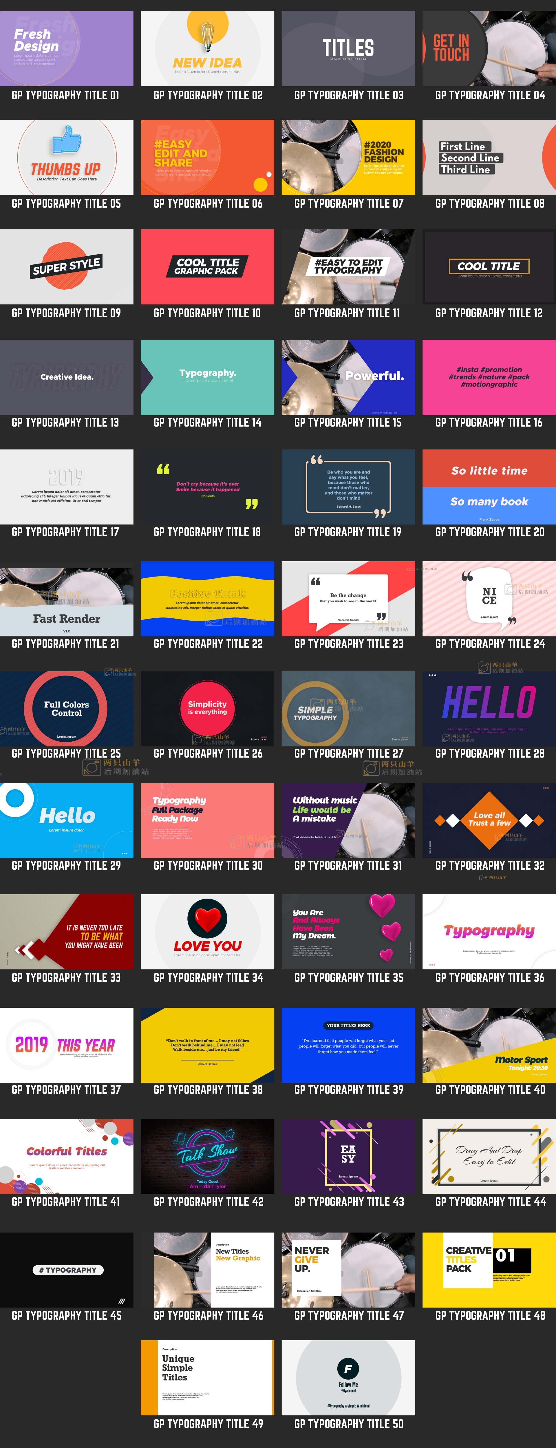 AE/PR模板-50种现代时尚创意动态文字标题图形排版设计动画 Motivation Titles Typography Pack
