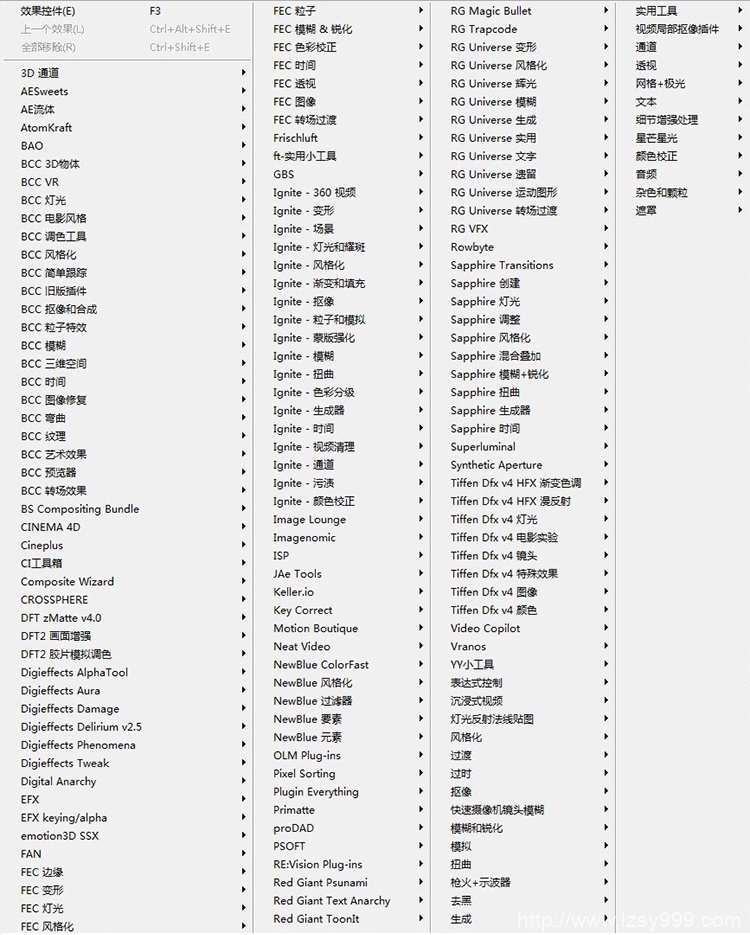 AE插件合集一键安装包全套粒子特效转场降噪磨皮抠像e3d中文!
