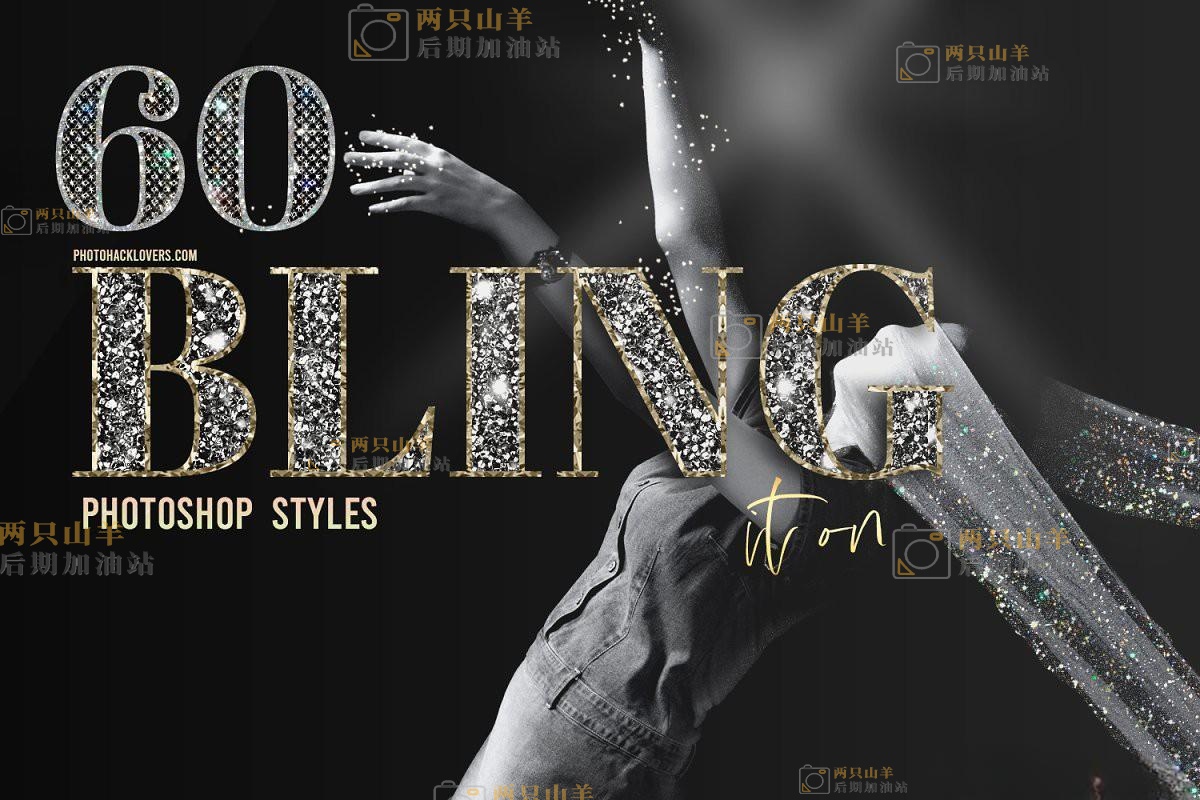 PS动作/素材-60种钻石宝石手工制作水晶艺术photoshop闪闪发光风格样式 blingiton- Psstyles