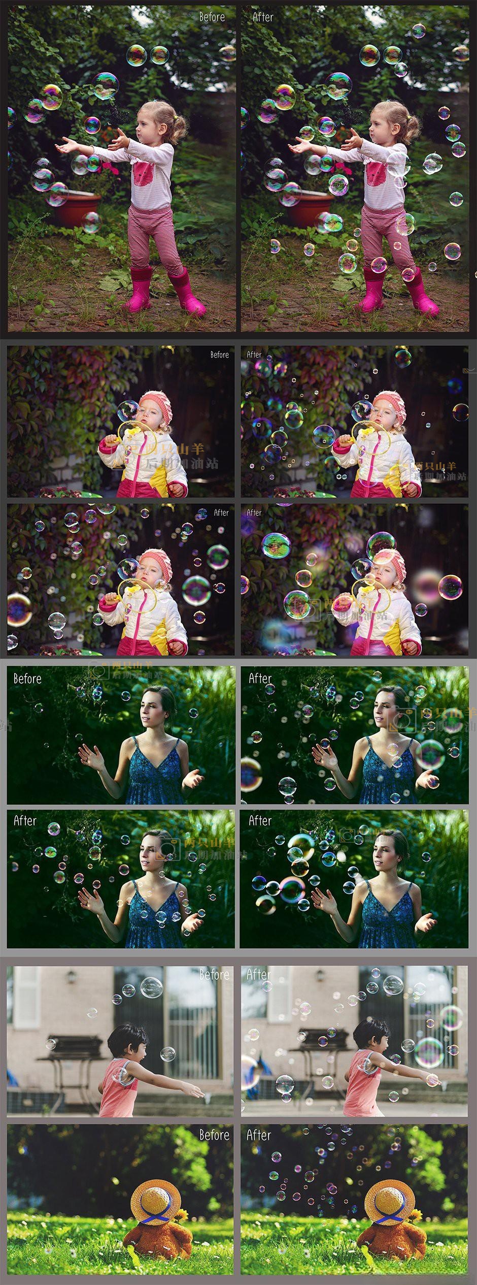 一组迷人的 100 个气泡 Photoshop 叠加层。这些叠加层易于使用,非常适合捕捉您在自己的摄影作品中所追求的漂浮气泡,并保证您在户外拍摄后获得出色的效果。