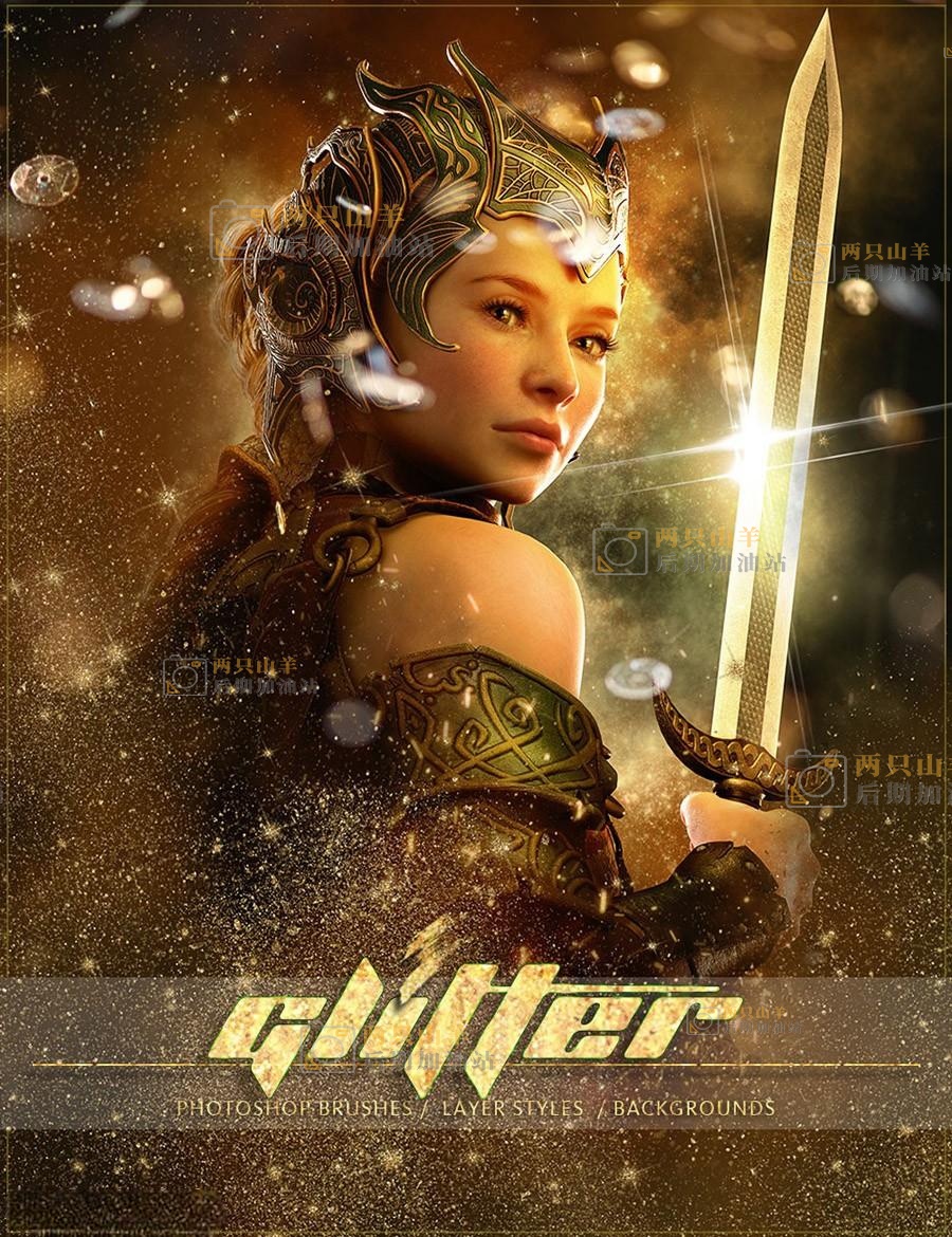 PS笔刷/样式/背景-闪光粉尘粉末PS笔刷商业人像修图化妆眼影唇彩PS合成素材 Ron’s Glitter