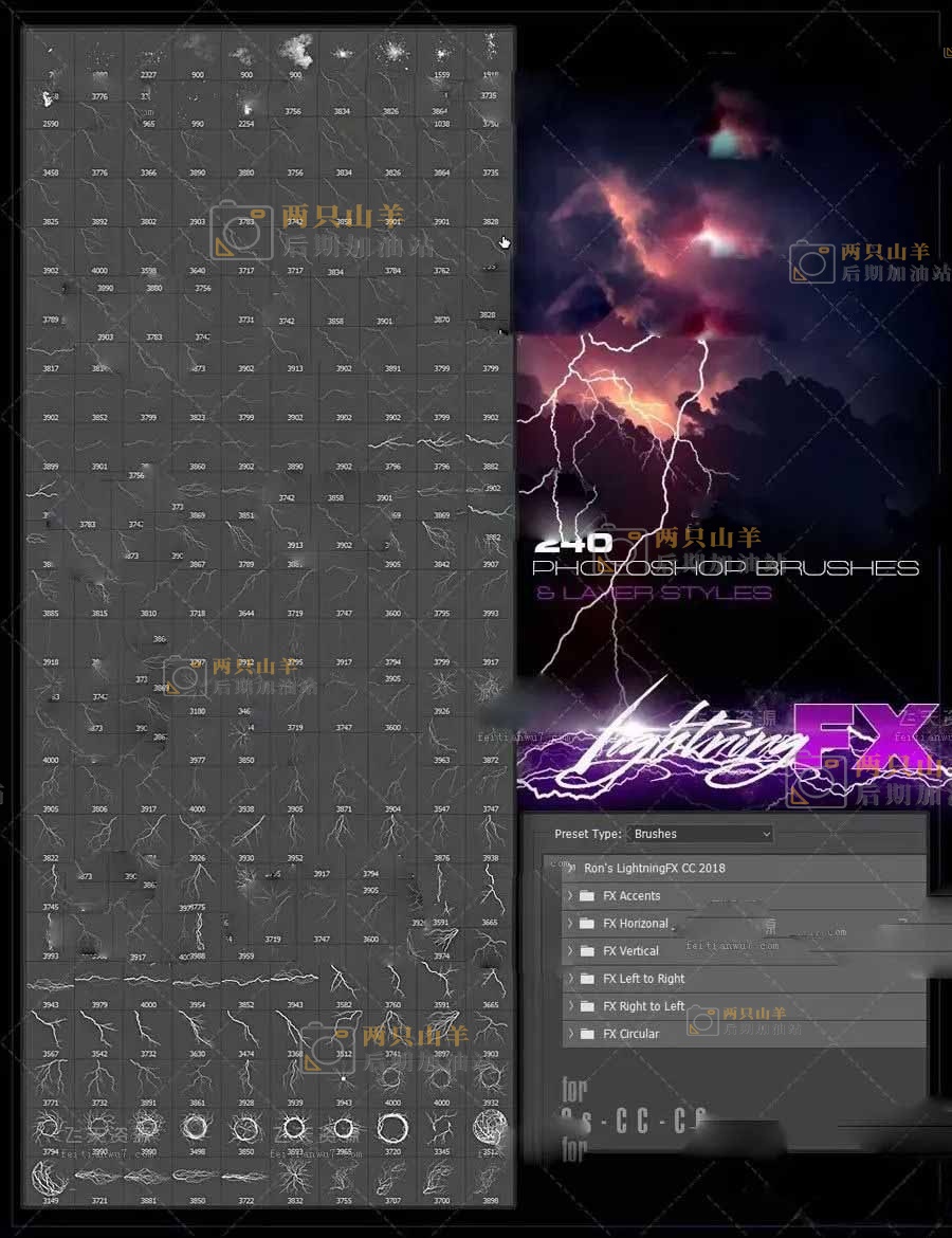 PS笔刷/样式-Rons 高清闪电光效笔刷 Ron’s Lightning FX