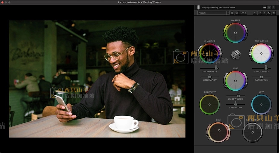 乍一看传统色轮和Warping Wheels插件之间的区别。 然而,认真探索会发现Warping Wheels插件明显优于传统的色轮。插件拥有更多额外的功能,能够更加精密的控制色彩,可进行二级调色,还可以对肤色进行单独调色。Warping Wheels跟经典的色轮一样拥有Master Wheel主色控制,可以控制整个视频图像的着色,饱和度,亮度等。