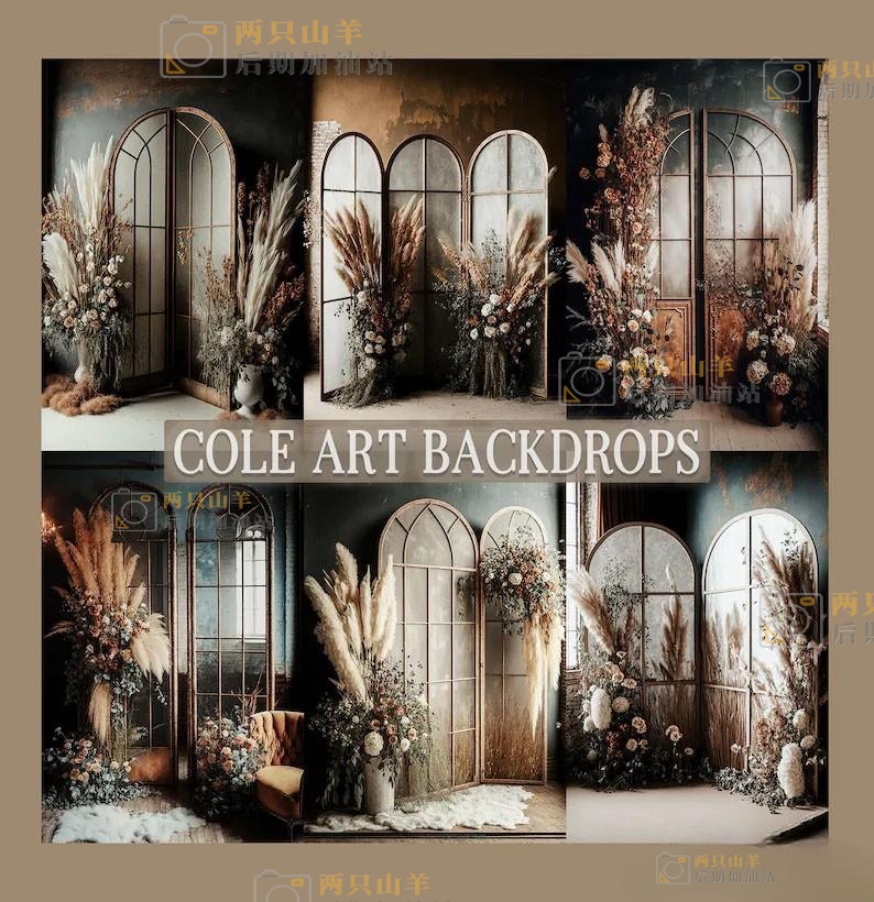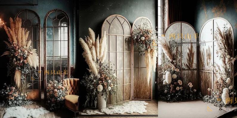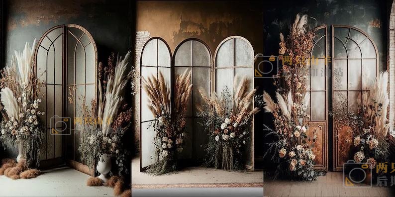 素材-波西米亚风格影楼室内棚拍写真棚拍背景7P Backdrops Boho Rustic
