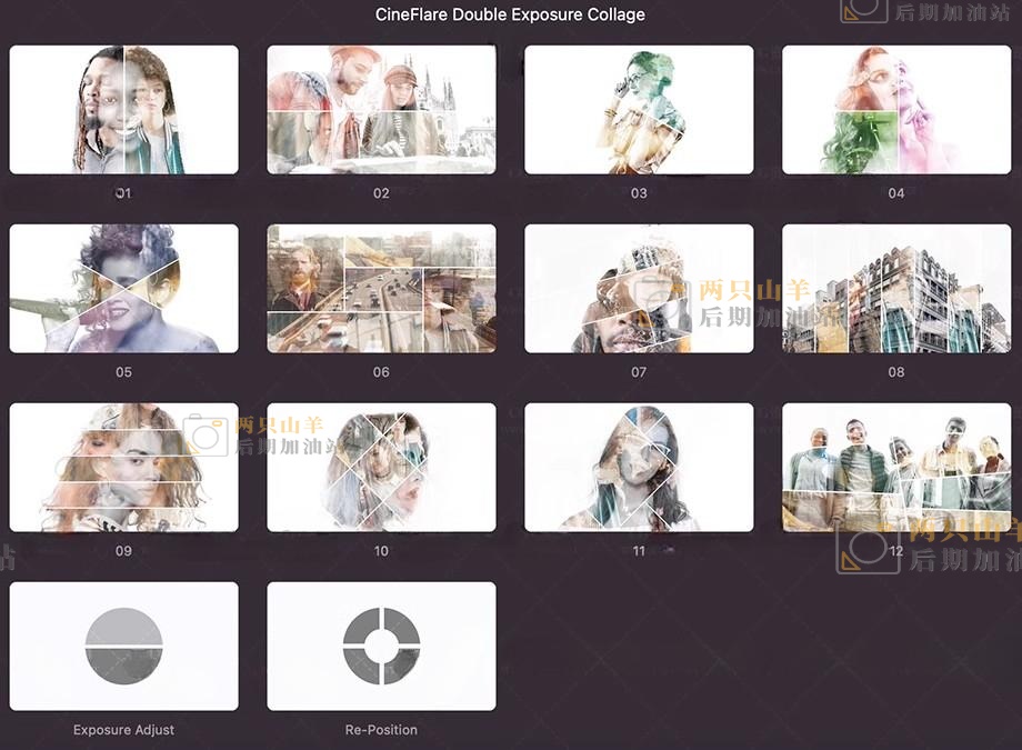 FCPX插件-14组创意时尚栅格样式拼贴双重曝光效果预设Double Exposure Collage 1.0