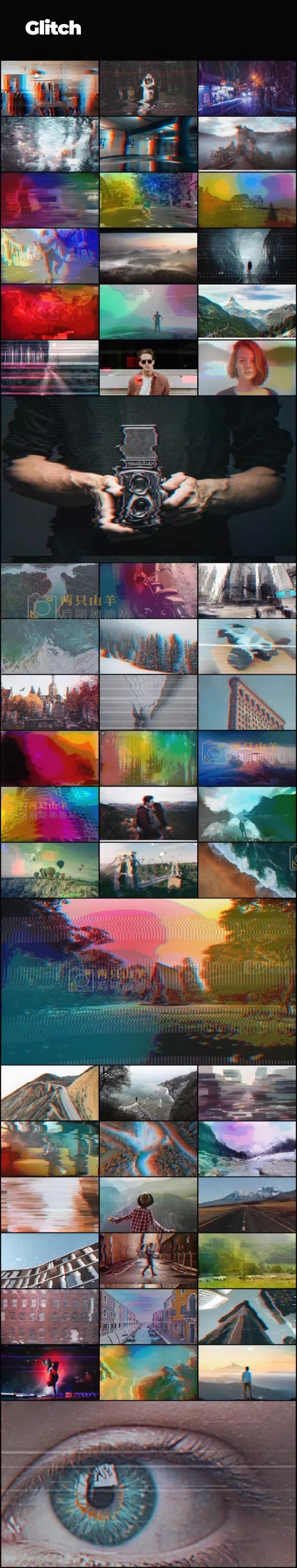 故障 – 信号不良、颜色、叠加、像素排序、像素化、抖动、拉伸、快速剪切 -