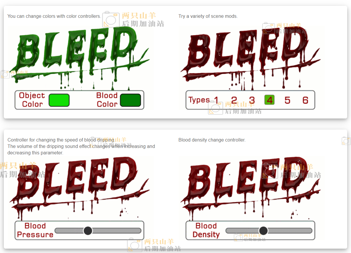 包括可控的 SFX。音效根据血液滴落的速度而变化。