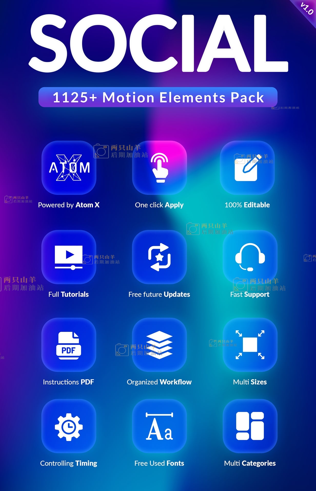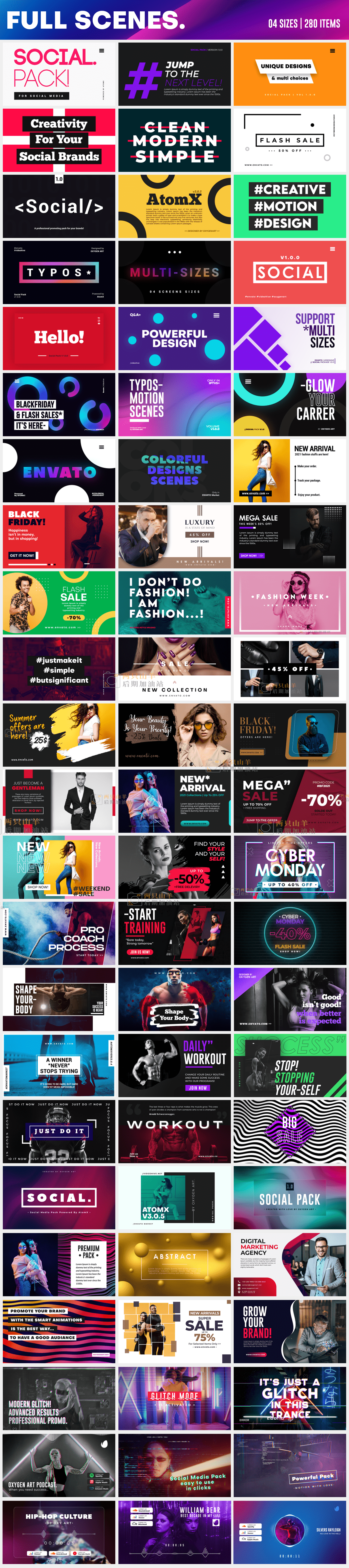 AE脚本-1125个现代时尚文字标题排版社交媒体包装调色转场背景音效图标动画预设 Social Pack(AtomX 3.0.8)