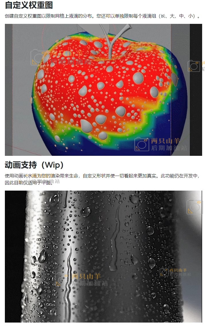 Blender 3.1及更高版本的完整程序水滴水珠效果生成器。所有几何图形都是通过100%程序创建的,这可以实现出色的自定义和性能。易于使用,所有设置一目了然。包含很多选择来制作属于自己的液滴版本。使用新添加的“高级设置”部分进一步修改它。使用动画长水滴为您的渲染赋予生命,自定义形状并使一切看起来更逼真。此功能仍在开发中,因此目前仅适用于平面。
