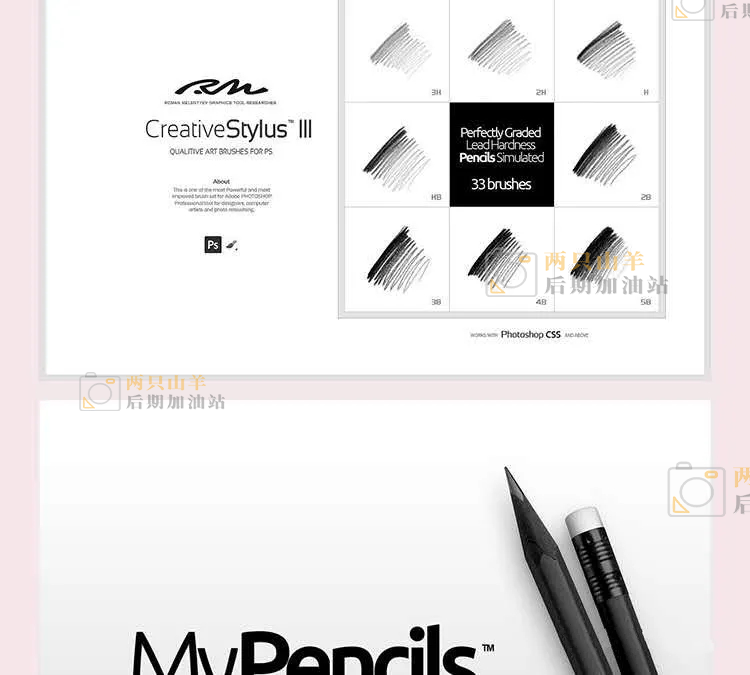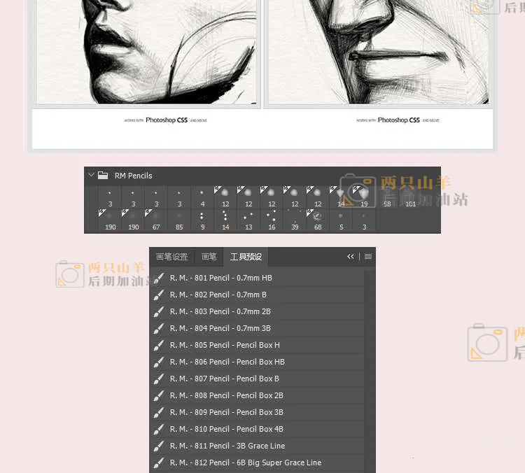 PS笔刷-PS油画质感厚涂干燥笔刷 4套PS精品笔刷