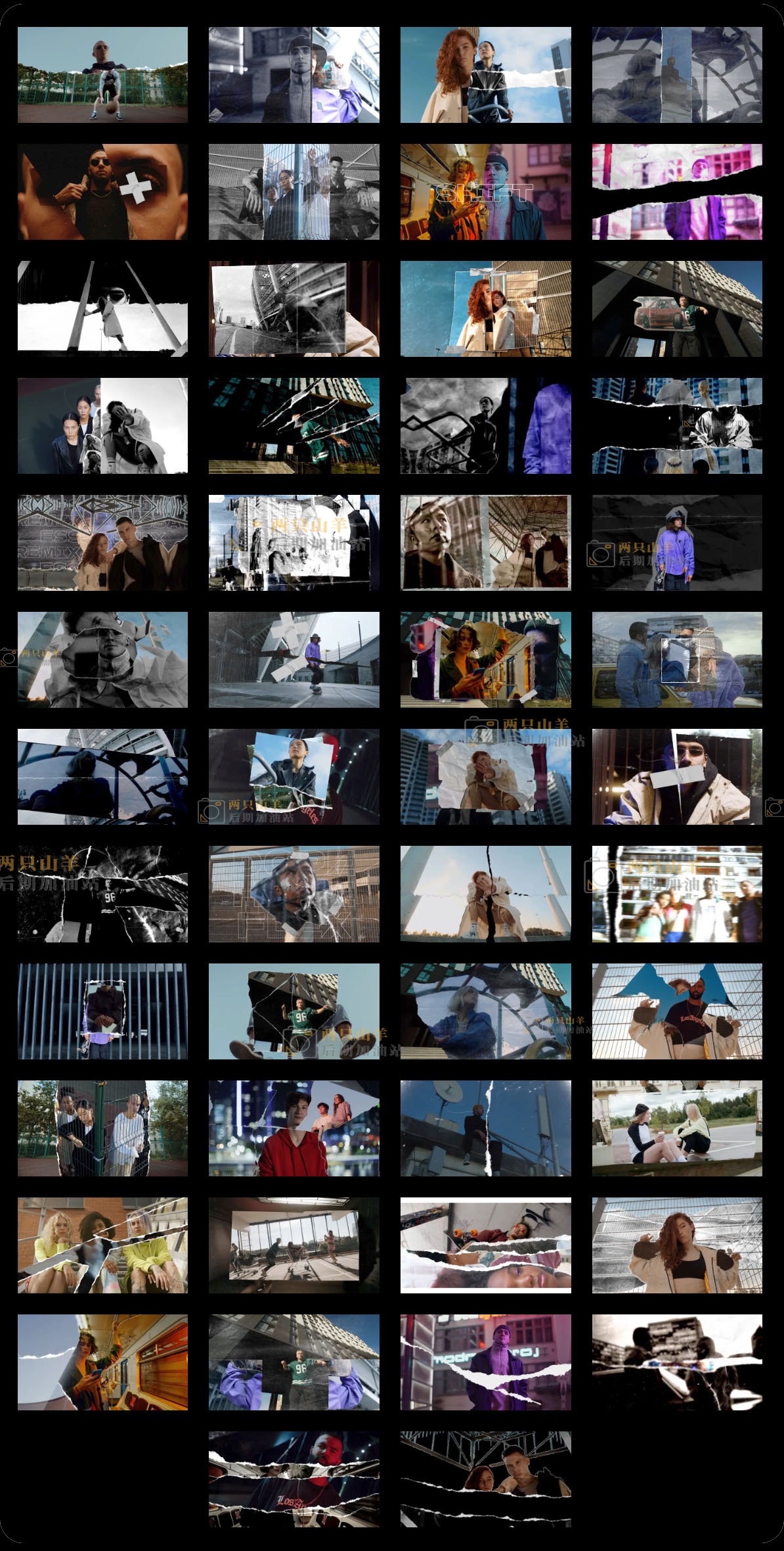 一套包含50种画面复古动态纸张撕裂、拼贴效果过渡转场,这些预设可以帮助你创建引人注目的视频转场,增加你的视频编辑项目的创意和视觉吸引力。