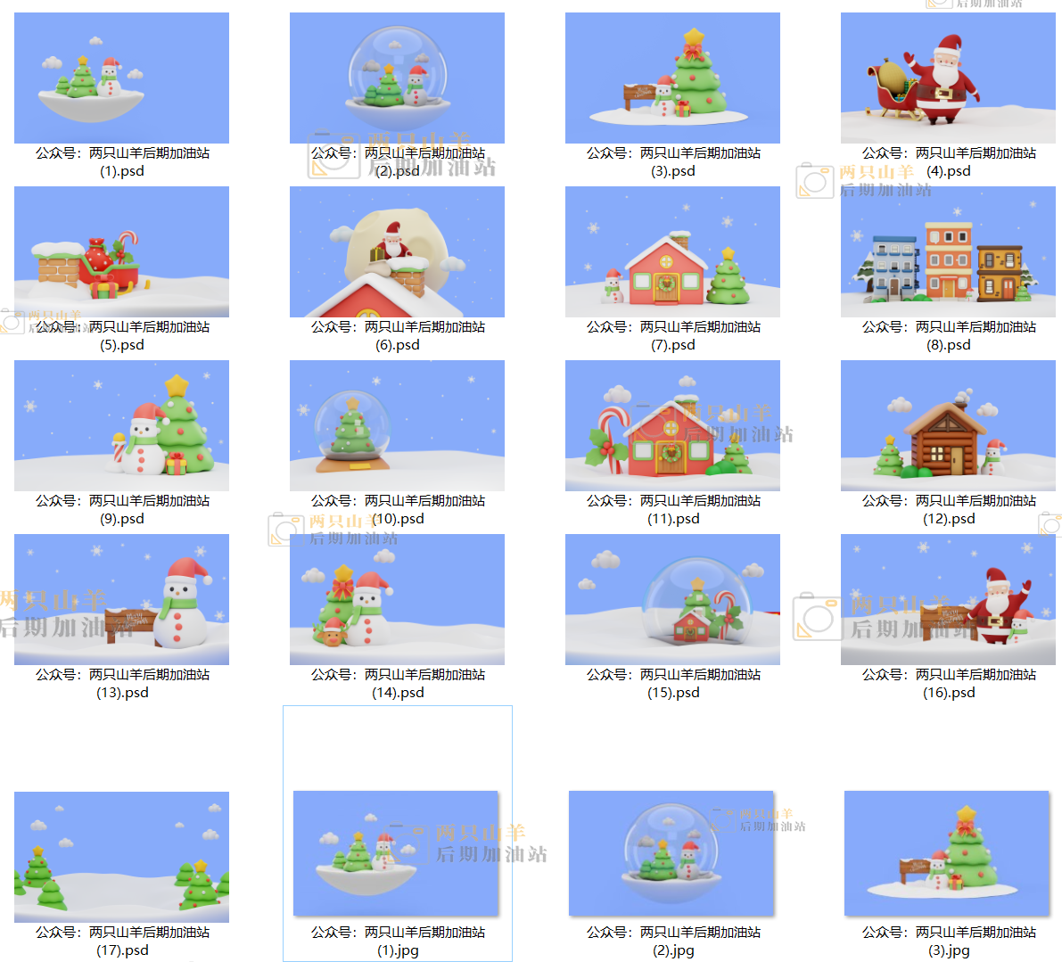 PSD模板-17款圣诞节趣味卡通雪地雪人圣诞老人房屋木屋插画场景背景PSD模板素材