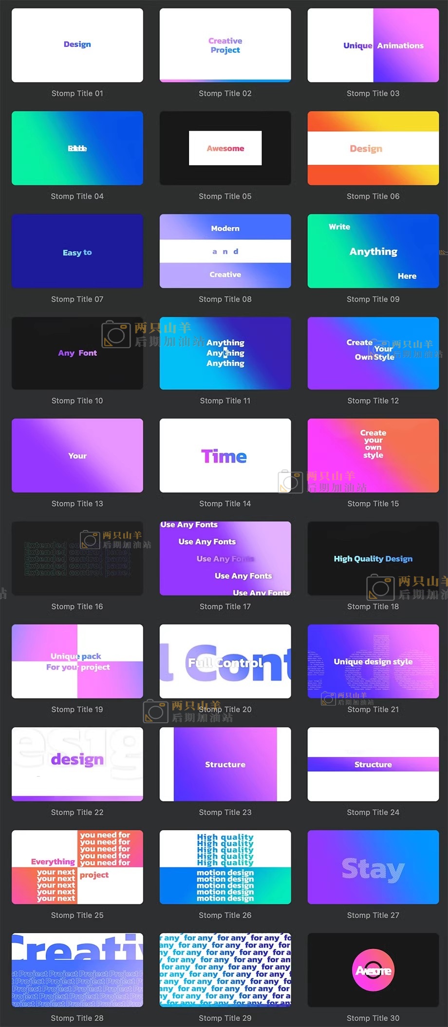 FCPX插件-30种时尚快剪活力文字标题快节奏滚动大标题排版动画预设 Stomp Titles