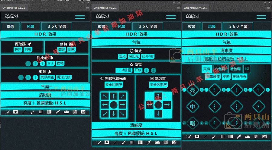 ORIONH PLUS,将改变你的摄影后期处理。OrionH Plus源于摄影师在后期制作中节省时间的需要。Orionh Plus可以快速应对:灯光曝光过度,曝光不足的阴影,颜色和去饱和.OrionH有三个不同的面板(星空,风光,360全景),Orionh也将吸引更多的数字艺术爱好者,而且可以进行微观控制:细节,颜色和灯光!为此我们建立了完全自动化的流程