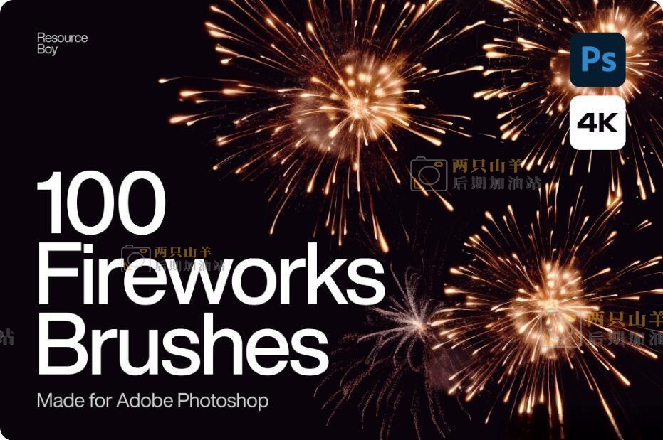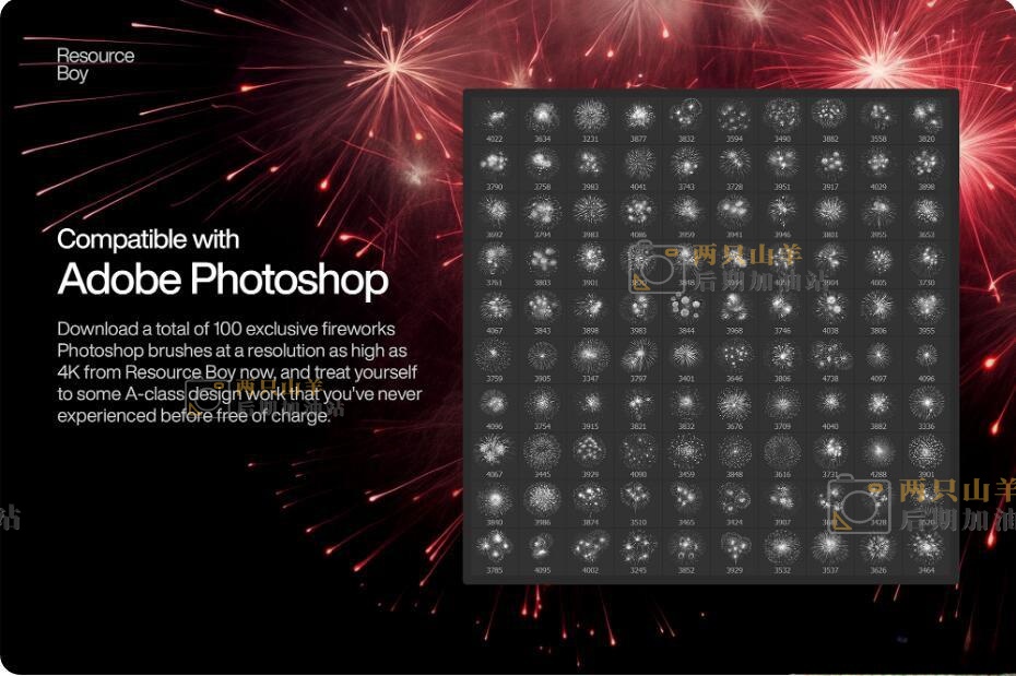 PS笔刷-100种炫丽新年烟花烟火礼花PS笔刷素材 Fireworks Photoshop Brushes