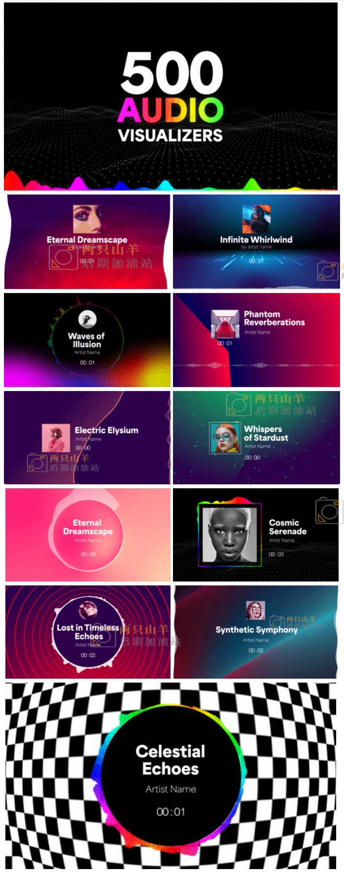 AE模板-500组创意音频可视化音乐播放器动画图形主题包装宣传动画 Audio Visualizers Pack