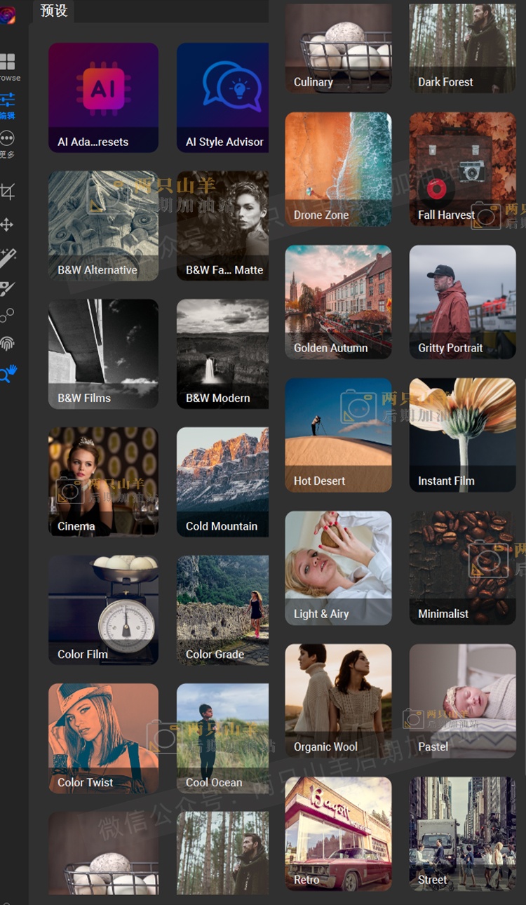 新增AI预设、AI增强换天空、AI人像、AI降噪锐化等功能
