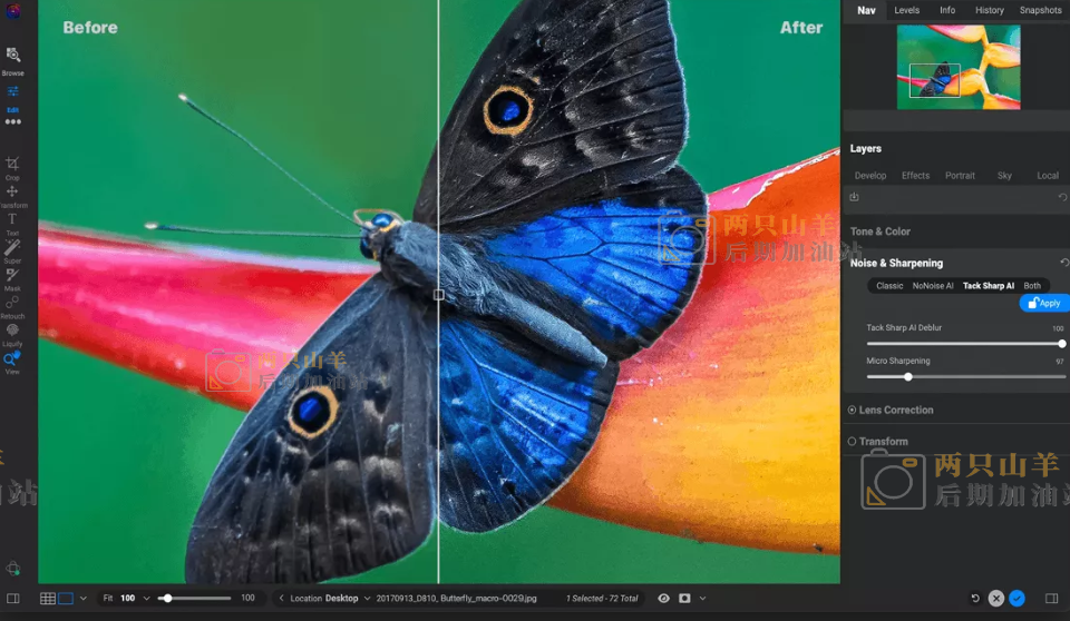 同时消除噪点和锐化照片的单一解决方案。自动颜色