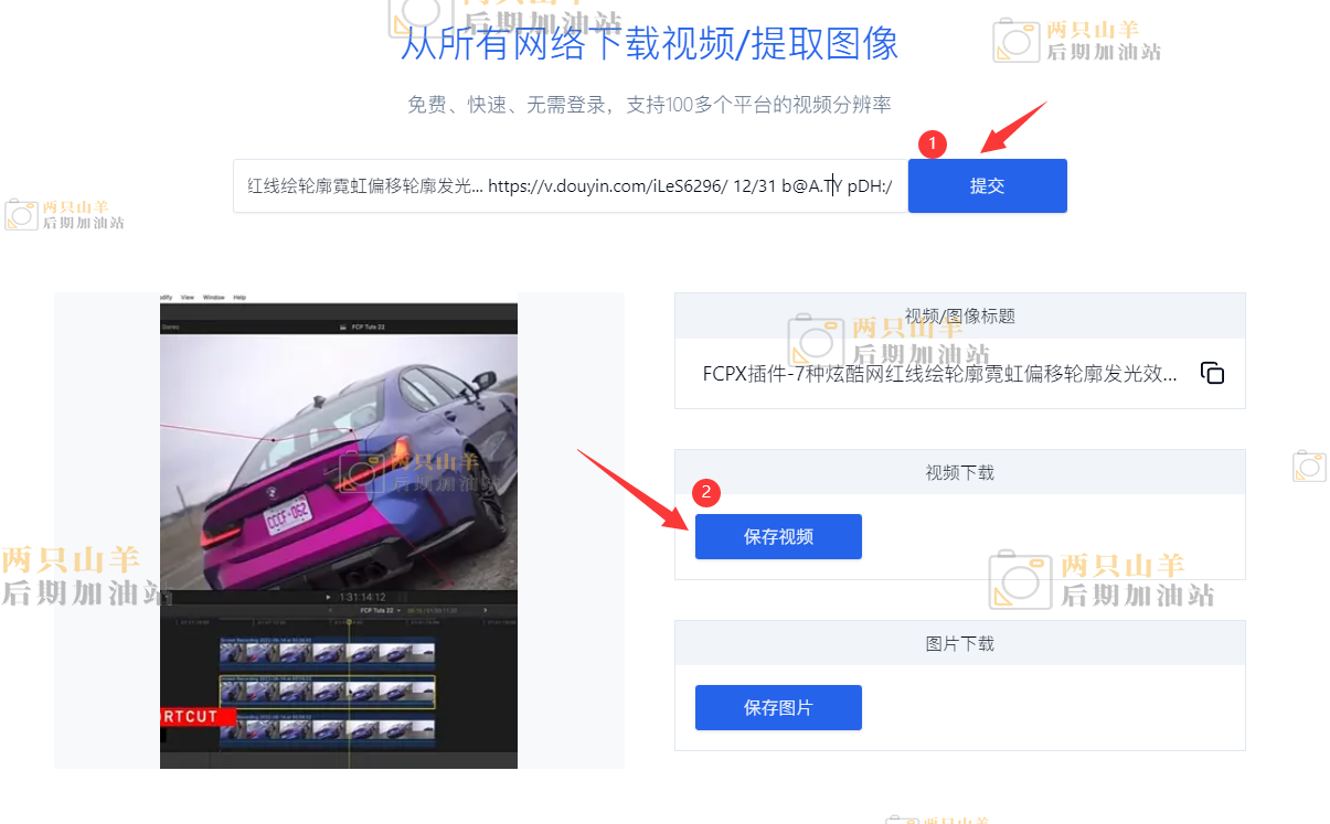 然后将复制的链接填入到工具里面,再点击「提交」工具就会自动解析。
