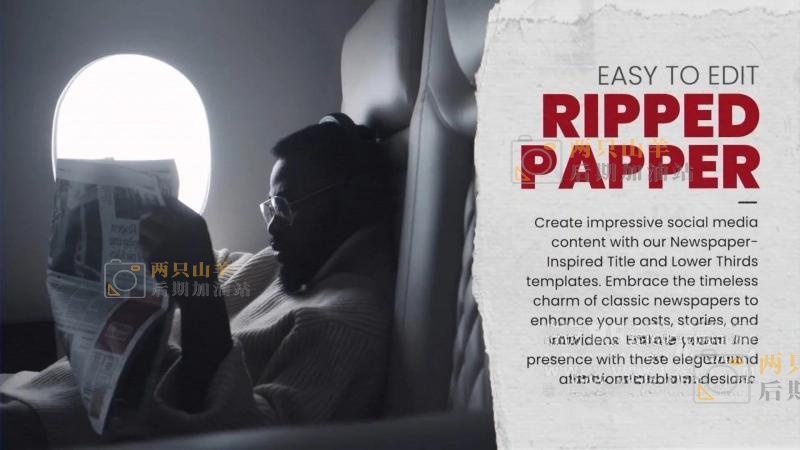 FCPX插件-32组创意旧报纸剪纸贴纸侧边栏文字标题字幕条动画 Torn Newspaper