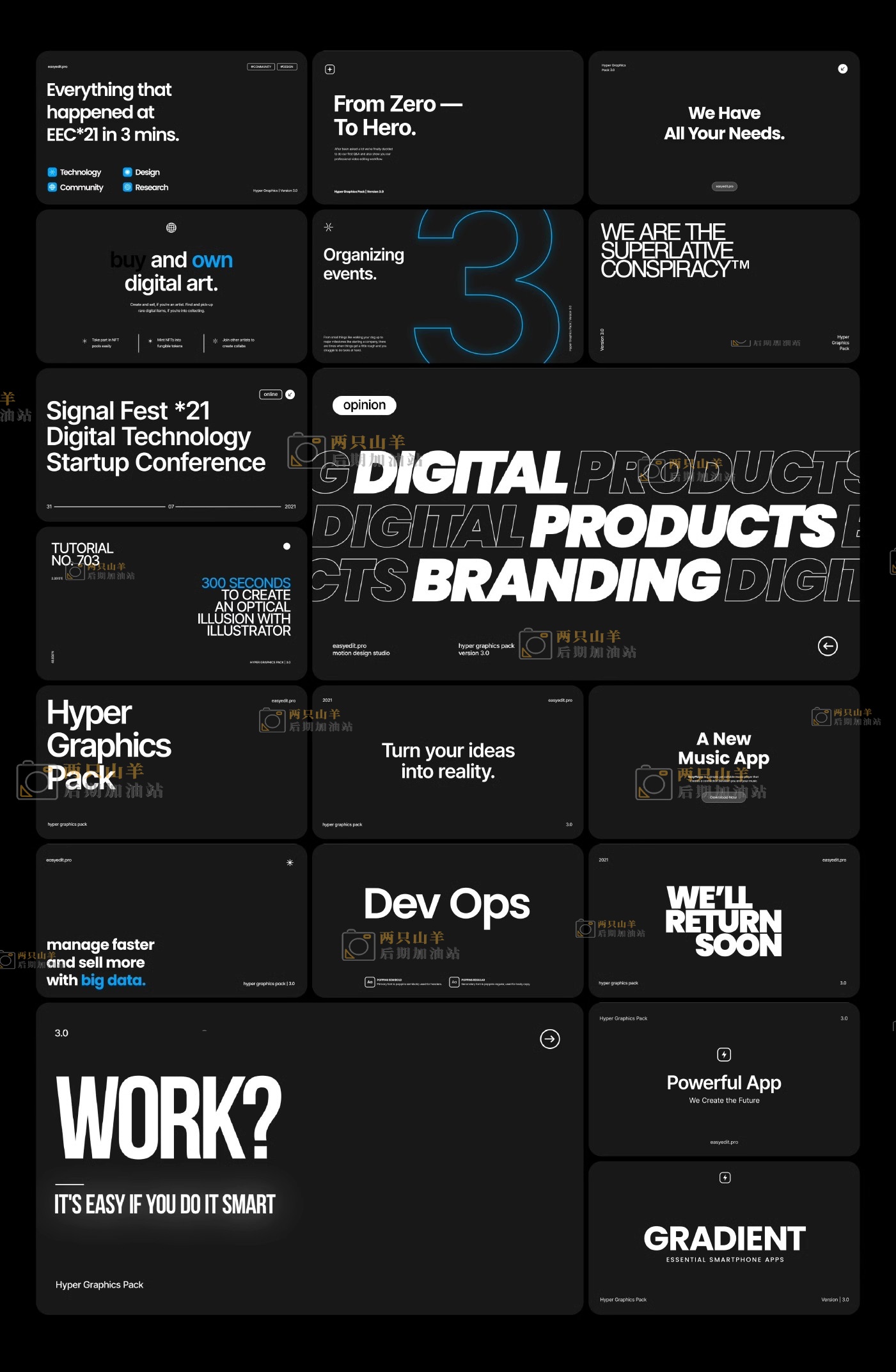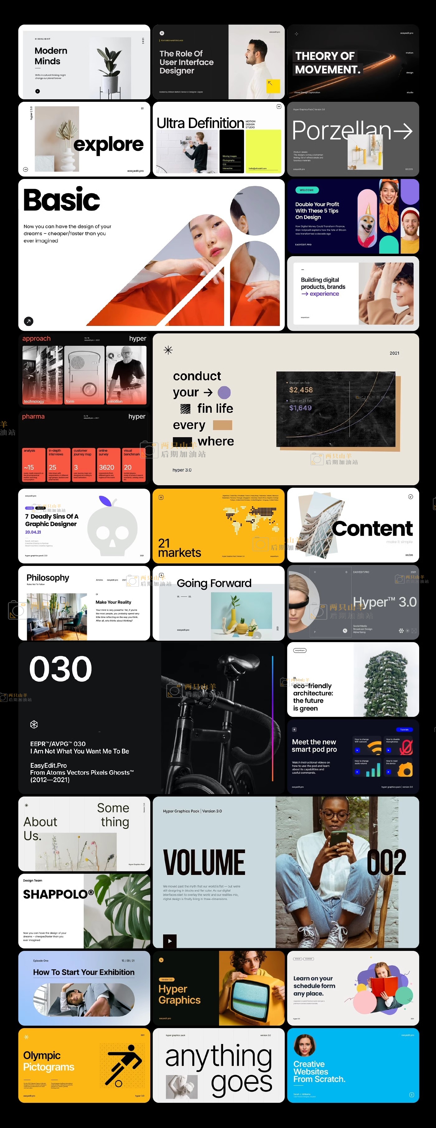 新的Hyper就在这里——我们添加了全新的元素,考虑到实际的设计、排版和 UI 趋势。Hyper包含25个类别,从社交媒体到背景。从