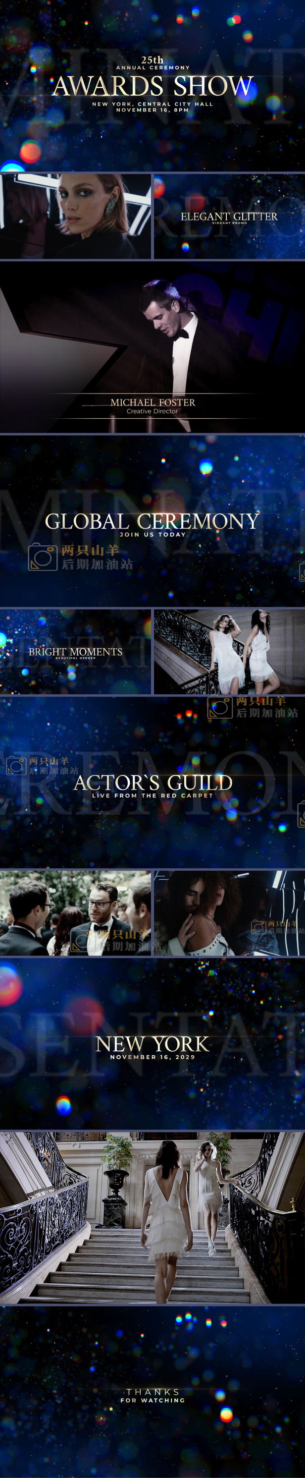 这套PR模板适用于颁奖典礼开场片头宣传,包含多种发光闪耀粒子元素,通过该模板轻松创建优雅预告片、带有真实粒子的幻灯片或令人印象深刻的时装秀介绍。