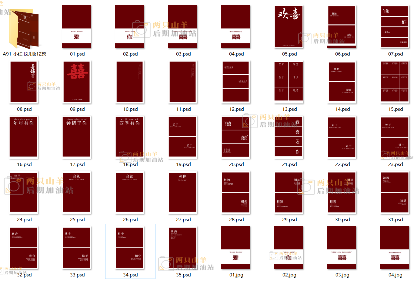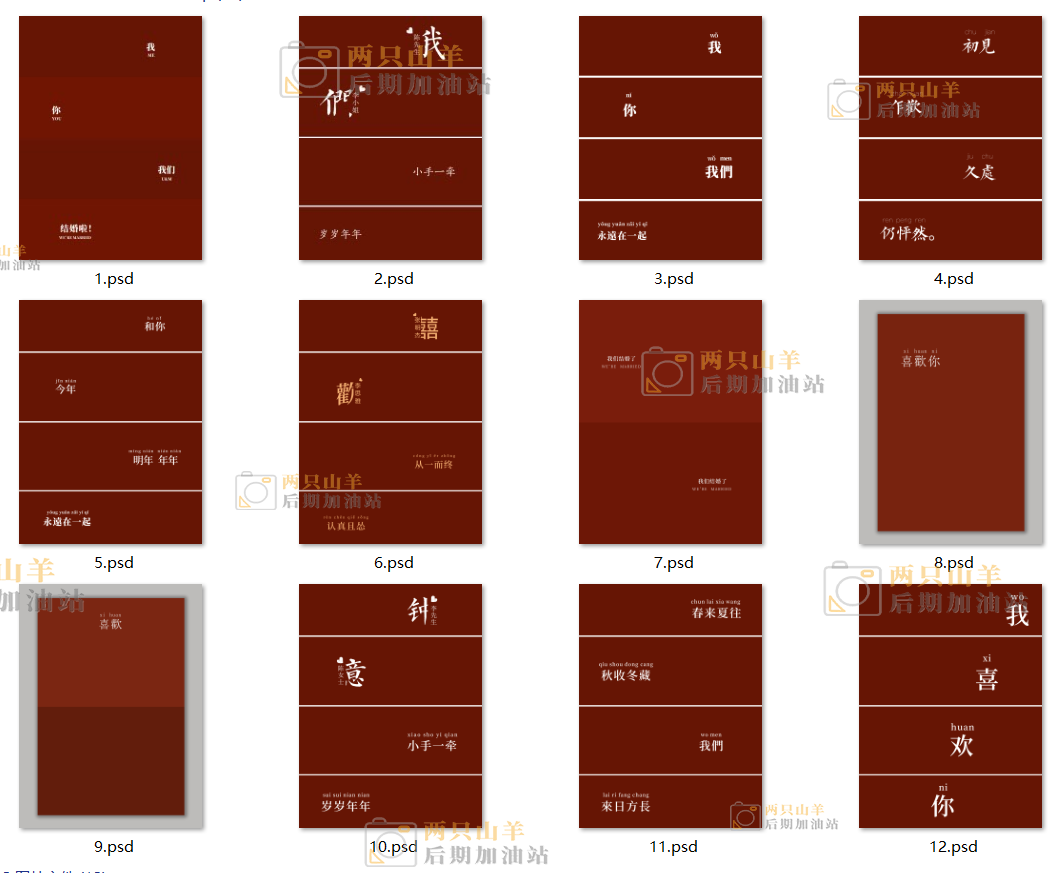 PSD模板-小红书结婚照素材喜嫁婚礼婚纱领证照片文字发朋友圈排版psd模板背景ps AAA