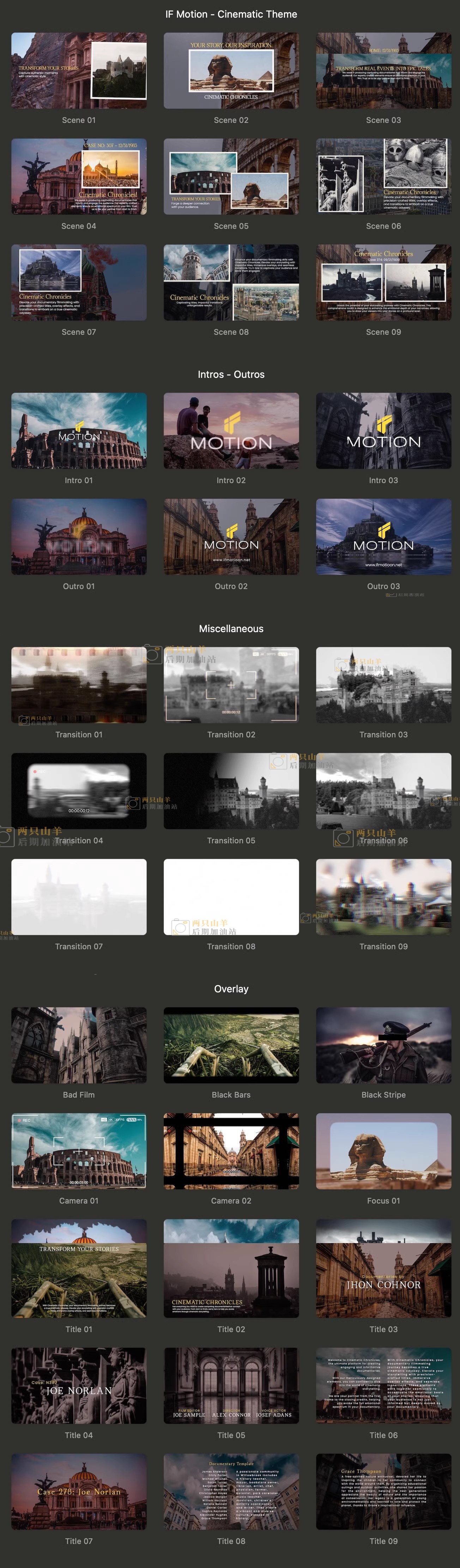 FCPX插件-史诗纪录片电影预告片头片尾文字标题场景转场动画 Cinematic Theme