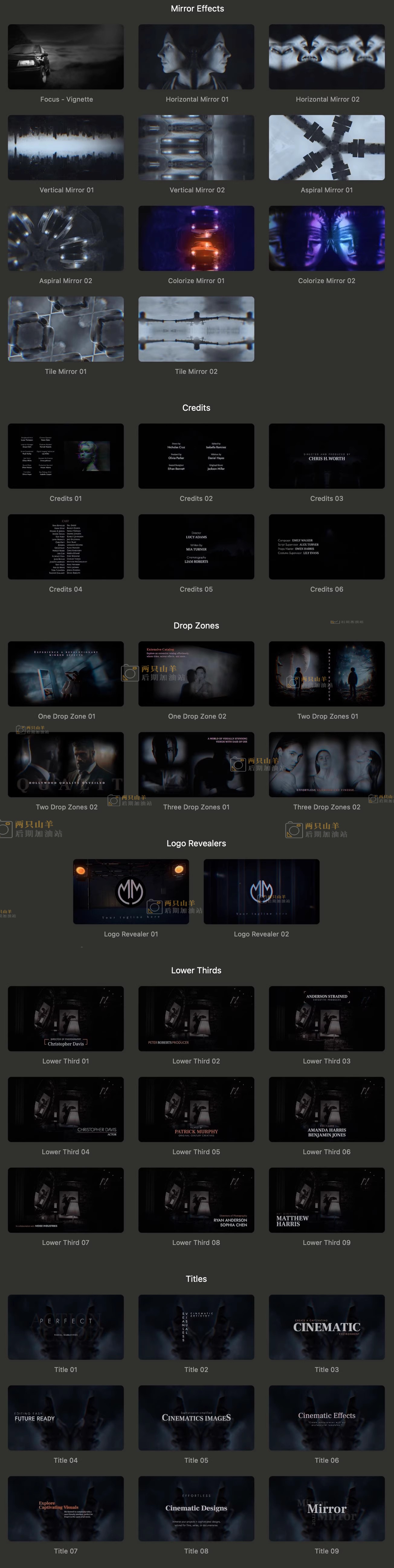 FCPX插件-43个好莱坞电影精致暗调戏剧性神秘感预告片镜像效果标题字幕条动画 Mirror Openers