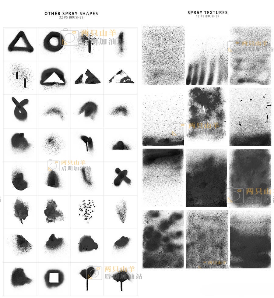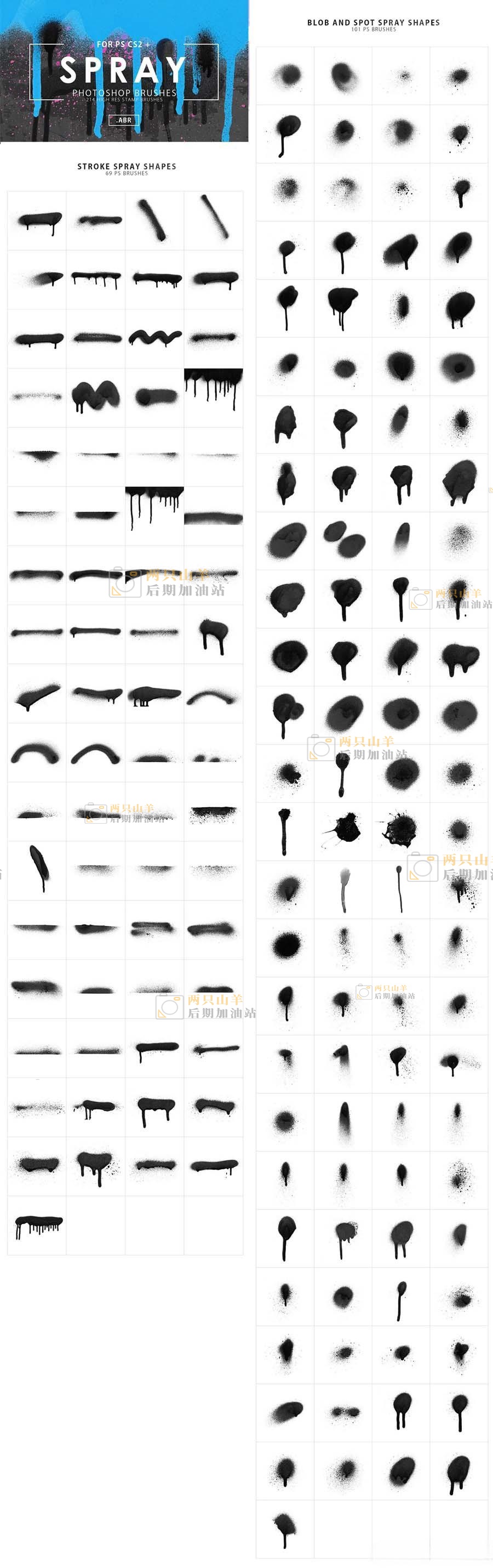 214个独特的喷刷(斑点,中风,斑点,泄漏,微粒),最大5000像素