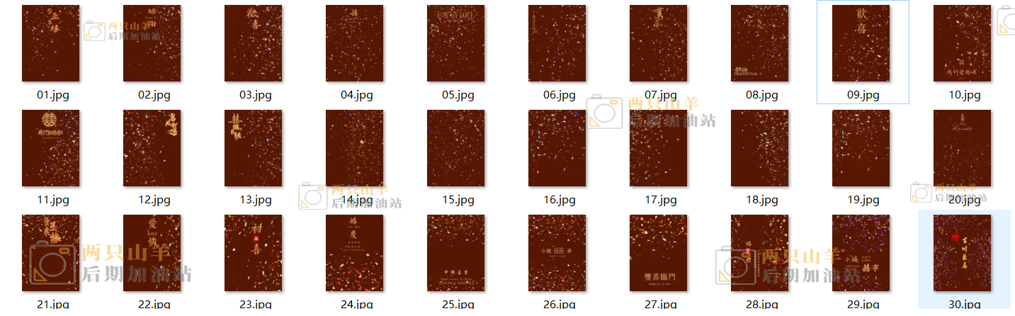 PSD模板-30款五彩纸屑PSD婚礼婚纱写真素材排版模板