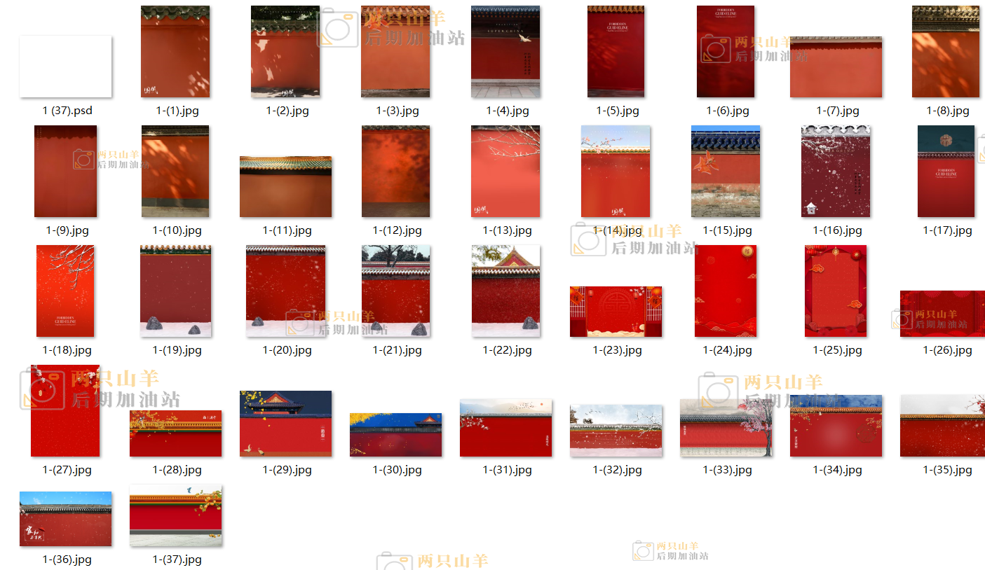 PSD模板-古风写真故宫红墙背景PS素材模板