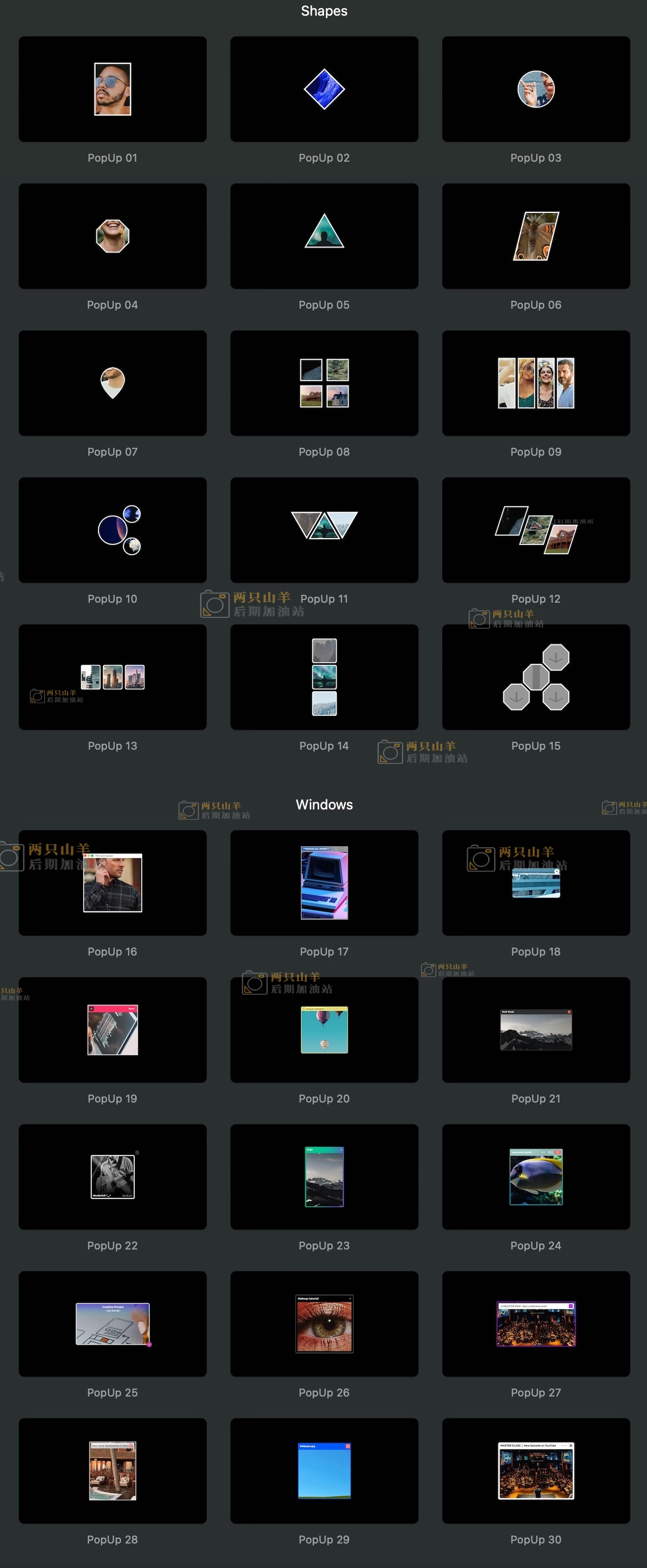 FCPX中英插件-30组窗口弹出画中画效果动画 PopUps