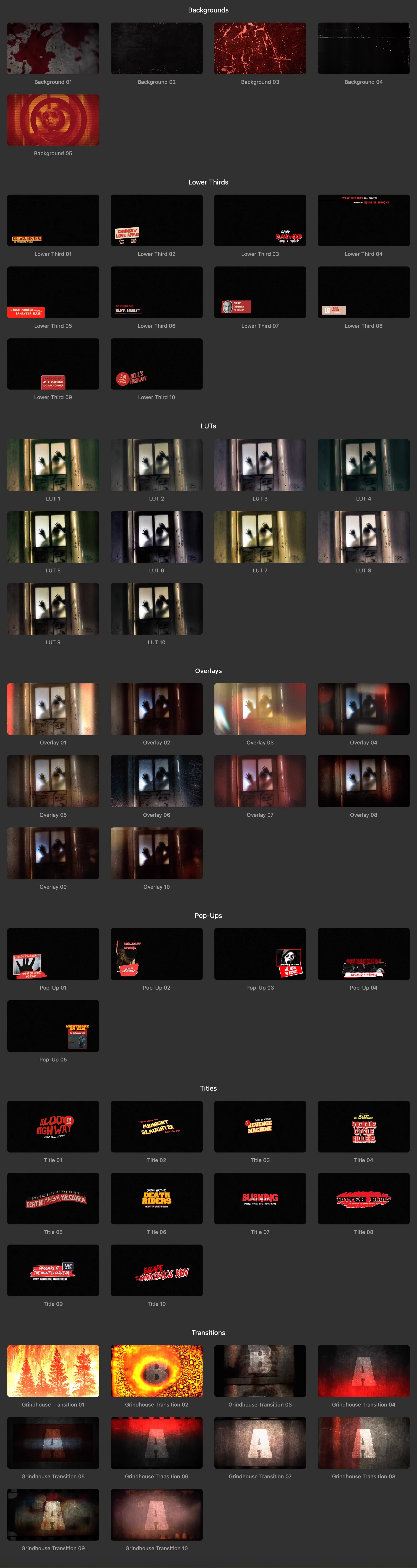 FCPX插件-经典复古恐怖电影氛围标题转场特效预设 Grindhouse Graphics