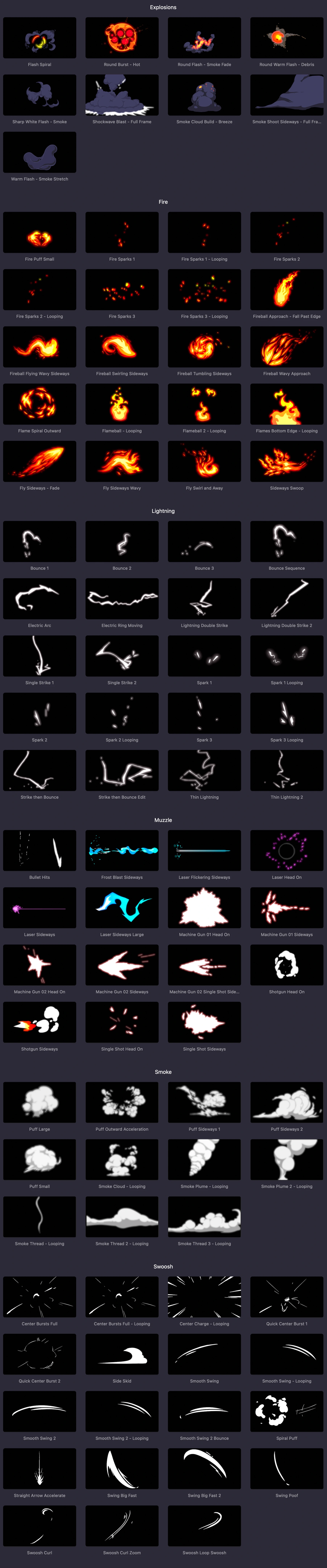 FCPX中文插件-94个手绘二维卡通手绘烟雾火焰闪电爆炸射击MG动画预设 The Luut Action Pack