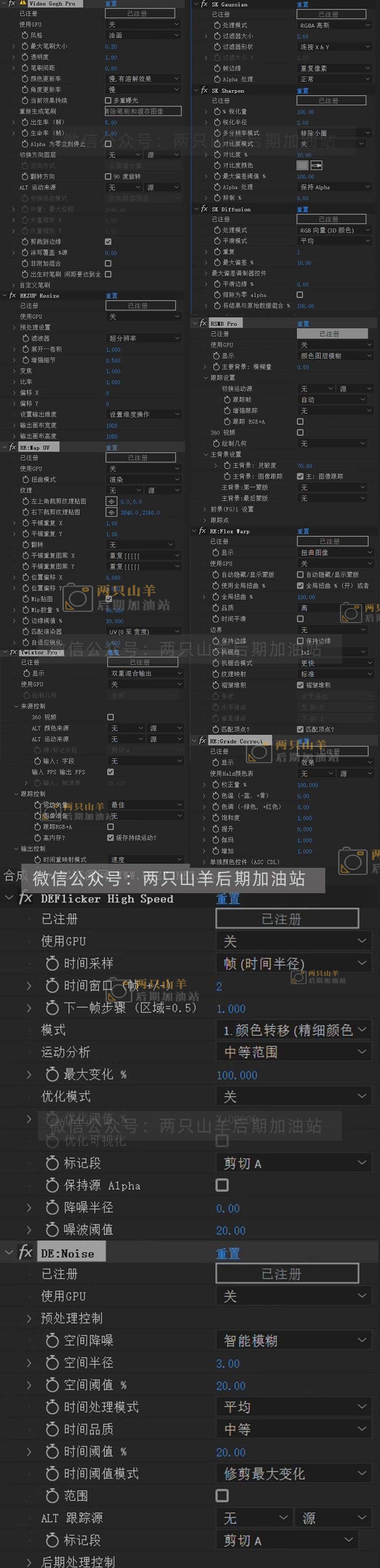 Twixtor/Flicker/RSMB/Flex等是非常受欢迎的常用插件。